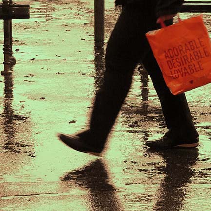 Marijan Blažina predstavlja fotografski uradak. Nastao slučajno, iniciran umjetnikovim darom zapažanja. Usred monotonog bezbojnog kišnog dana u kadru se ukazuje napadna, ciljano obilježena ambalaža, vrećica crvene boje sa znakovitim natpisima. Iako ne znamo sadržaj vrećice, ponukani smo povjerovati da je u njoj nešto što ima odlike napisanog: nešto kao divno, poželjno, dopadljivo.