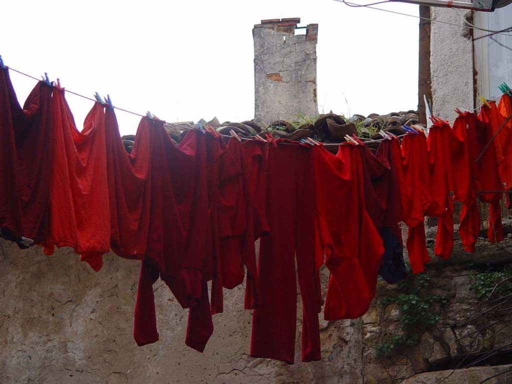 Vedran Burul zna što je photoshop. No, ovdje taj program pun čarolija nije uporabljen. Senzibilno oko umjetnika zapaža neuobičajeni koloristički plijen: na špagu za sušenje izvješena je kolekcija crvenih odjevnih predmeta.