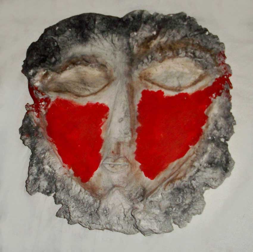 Bruna Dobrilović realizira lice po uzoru na drevne maske. Izvodi ga modelirajući u sadri uz dodatak oskudnog kolora. Sukladnost temi projekta autorica pronalazi bilježenjem ljudskog stanja. Ona maski dodaje snažan crveni ton na oba lica. Tako već na prvi pogled shvaćamo da se radi o sramu. Time Bruna Dobrilović komentira opće stanje civilizacije. Kao što lice nema naglašenih fizionomskih, osobnih karakteristika tako se i financijska agresija skriva u mnoštvu umreženih razloga a koji svi imaju istu želju – osiromašiti ljude na uštrb nedodirljivosti dogmi i krupnog kapitala. U obrazloženju Bruna Dobrilović kaže da je čovjek stvoren savršen a da se izgubio u moru interesa i nepotrebnih htijenja. Ona izražava nadu da će svijet i savjest čovjekovu jednom preplaviti sramota kajanja.