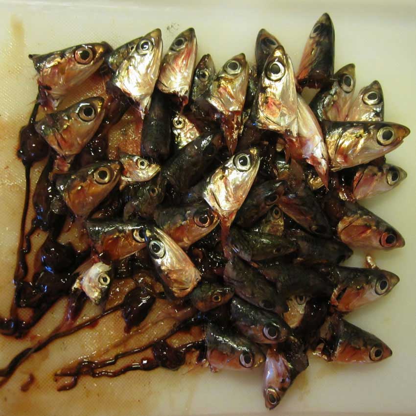 Slađan Dragojević podastire fotografski rad koji izaziva nelagodu. Koliko god voljeli frigane ili marinirane srdelice, predstavljena scena pripada procesu priređivanja i obično se ne plasira konzumentu.