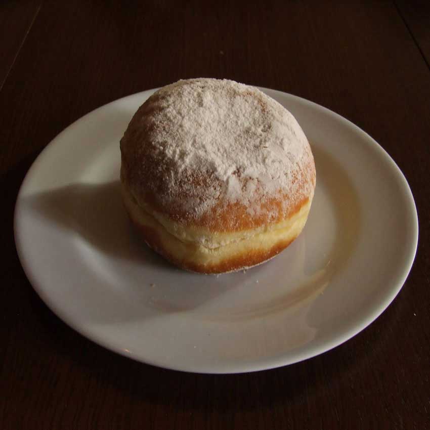 Bogomir Duzbaba promišljenom dosjetkom odgovara na zadanu temu. On nam nudi primamljiv kolač, krafnu. Već od djetinjstva velika većina nas voli krafne. Najčešće s marmeladom. Taj sadržaj kojeg očekujemo grickajući tijesto, negdje mora biti u masi kolača. Motiv djeluje zamamno a tema je skrivena. Potreban je slatki napor da se dopre do teme. Na njegovom radu crveno moramo pretpostaviti. Autor nam nameće ideju ali nam prepušta realizaciju. Prečesto kvaliteta je skrivena i nije odmah na domet. To se odnosi na ljude, na situacije i na predmete. Ova maštovita interpretacija teme ovog projekta potiče nas na razmišljanje. Naravno, ne mislim na to gdje ima kupiti krafni već o skrivenim kvalitetama koje treba otkriti.
