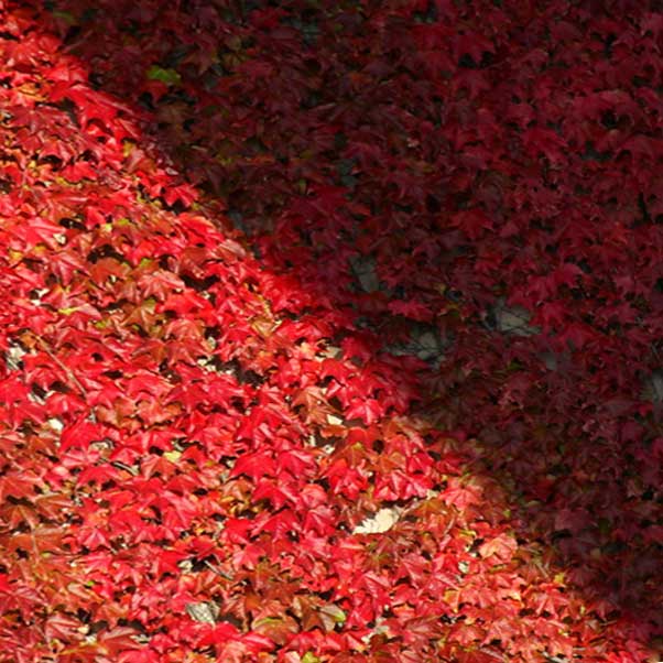 ilustrira temu ovog projekta zanimljivom fotografijom. Autor zapaža motiv na podlozi, fasadi obrasloj lišćem neuobičajene boje. Polovica kadra prekrivena je sjenom pa je rad podijeljen dijagonalno. Hrabri, kvadratan izrez dinamizira detalj mogućeg izobilja izvan kadra. Nakupine lišća tvore raster. Sasvim običan motiv dramatiziran je podjelom na trokutaste segmente. Konglomerat lišća pretvara se u znak. Znak mijene u prolaznosti vremena