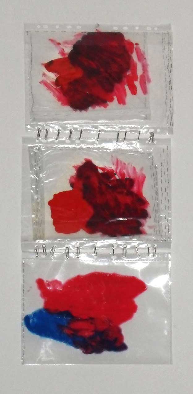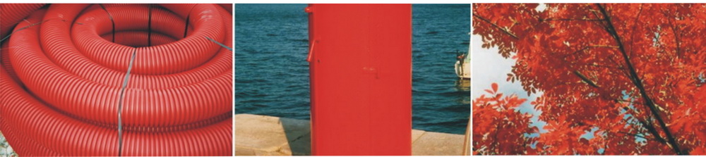 na temu crvene boje odgovara triptihom. Unutrašnja poveznica ovog rada je boja. Sadržajno su elementi u neskladu. Ovdje nalazimo klupko izolacijske cijevi izrađene od sintetičnog materijala. Na dugom dijelu triptiha je detalj crveno obojenog stupa iza kojeg se prostire morska površina. Treći dio ove cjeline je kadar dijela krošnje stabla sa crvenkastim lišćem.