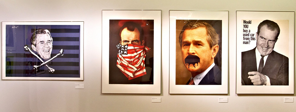 Osim političkih plakata izložba obuhvaća i ikone političke satire – od Johna Heartfielda do Klausa Staecka – fotografske serije i umjetničke projekte – kao što je npr. foto-esej Nicolasa Righettisa o apsolutističkom vladaru Turkmenistana ili poznata fotografija Angele Merkel Herlinde Koelbls.