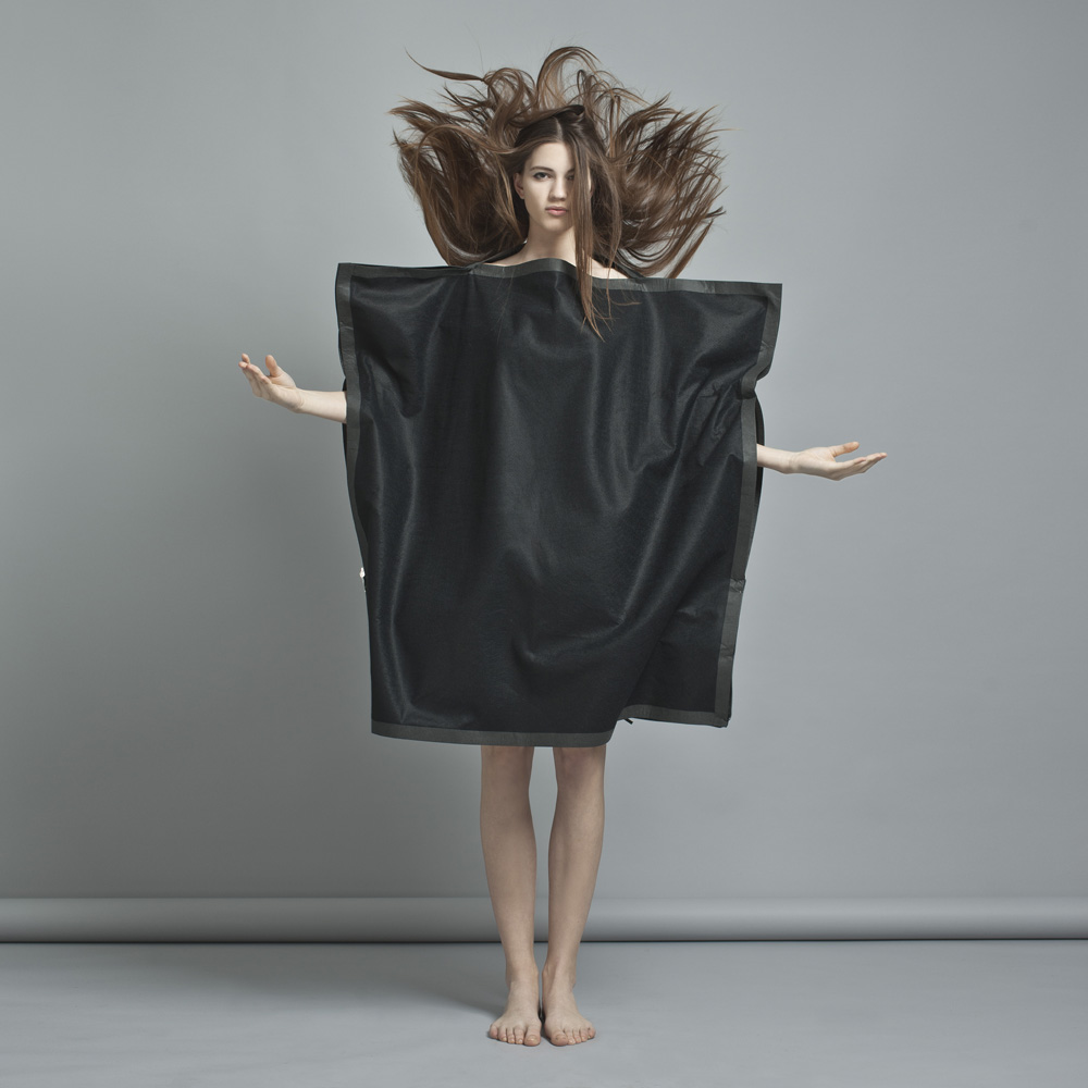 „Baš odjeća“ tema je i Kristine Šepetavc koja predano istražuje ulogu odjeće: – Ljudi polusvjesno ulaze u proces odijevanja. Želim istražiti taj intuitivni impuls. Emociju koja ga pokreće. Želim da osvijeste tko su oni ako nemaju odjeću kao pregovarača kojeg svi poznaju. Možda to dovede do nove komunikacije odjećom – kaže Šepetavc. Zato kreće iz temelja, od crnog kvadrata i njegovih komunikativnih mogućnosti. Eto nas naposljetku kod poznatog Rusa. Halo, Maljeviću, svi smo mi očigledno povezani…