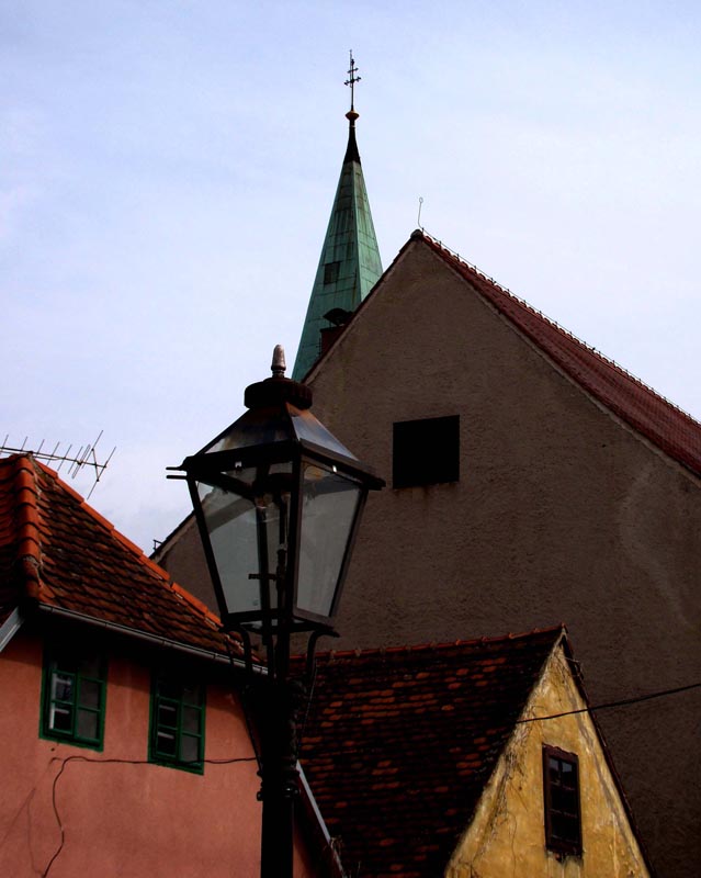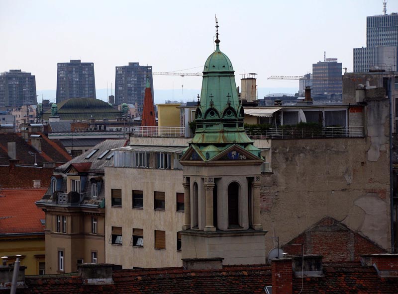 Radi se o autorovim tematski karakterističnim motivima. Ne zadržava se na tlu nego pogled diže prema pročeljima, krovovima i zvonicima. Na taj način autor doživljava grad i predstavlja ga na drugačiji način nego smo navikli gledati. Tu je niz fotografija kroz koje nas autor vodi od pročelja i zvonika, od centra do periferije. Na taj način nadahnuto priča o gradu. Posebnost tih fotografija su ulične svjetiljke gotovo na svakoj slici, koje djeluju pomalo nostalgično. Gledajući ih, vidi se idila prošlih vremena isprepletenih stvarnošću.