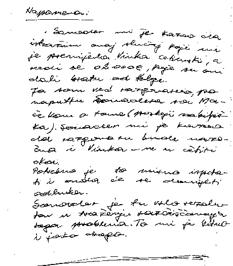 Ja inače ne znam za nikakvo uplaćivanje keša jer vidim samo ugovore koje potpisujem. Rekao sam Barišiću da mora na to upozoriti Sanadera. Ako je to istina, ja u tome neću sudjelovati jer s tim nemam ništa… Svojevrsni je to zaključak jedne od bilješki bivšega glavnog tajnika HDZ-a Ivana Jarnjaka.