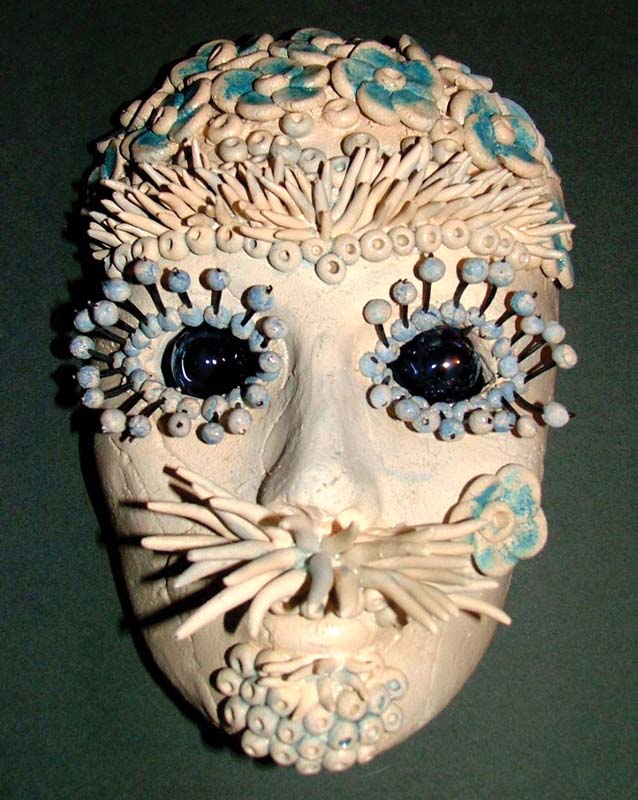 10. Grozdana Korpar, „MASKA“, 25x25cm, modelirana bijela šamotna glina (angoba-bakrena žica)
