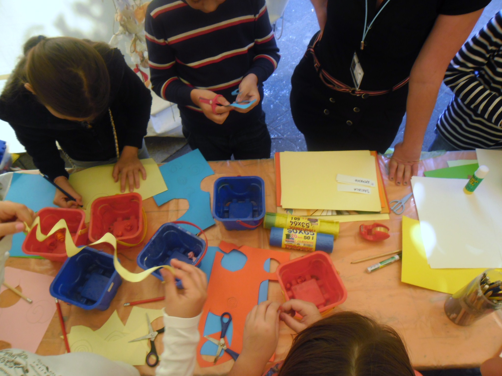Radionice su se odvijale u dvije grupe. U prvoj grupi studenti su radili tehnikom kolaža(vjetrenjače, drveće i ruže), dok je druga grupa imala radionicu „Arheolozi“ koju je vodio Sergije, u kojoj su djeca najprije u pijesku tražila komadiće koje su kasnije spajali u cjelinu.