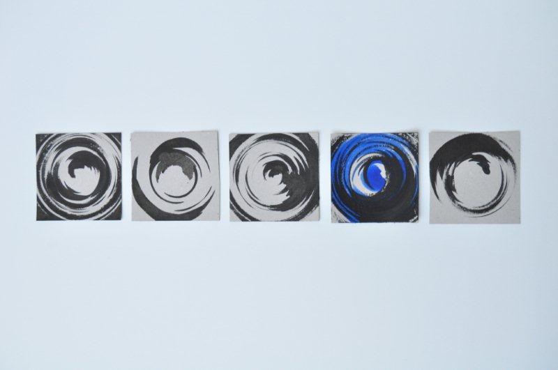 Stoga poznavatelje opusa Marine Tudjina Badurina neće iznenaditi njezin likovni iskorak u dvodimenzionalno područje slikocrteža, u kojemu na još radikalniji način umjetnica svodi svoj likovni i poetski izričaj na još elementarnije i čišće oblike. Motiv spirale ili zavojnice bit će variran na podlozi od papira u tehnici tuša, akrilne boje i gline, kao da prostornost i kinetička energija kretanja mogu biti dovoljno obuhvaćeni na dvodimenzionalnoj podlozi! Kao i kod oblikovanja predmeta i oblika na keramičkom/glinenom kolu, gdje kreacija mora biti iznimno brza i spretna, tako i nova serija slikocrteža govori o brzom, spontanom i vremenski kratkom djelovanju kistom po papiru. Greške nisu dopuštene, jednako kao što ih ne bi smjelo biti niti u kreacijama Prirode.