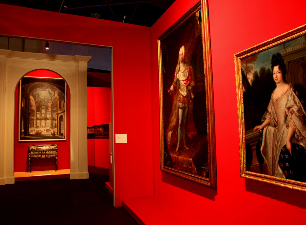 "Grimaldi Forum" je ogroman i širi se na oko 2500m². Direkcija je sebi dozvolila skupe usluge Catherine Arminjon, generalne konzervatorice baštine predsjednika međunarodnog Komiteta dekorativnih umjetnosti i ugledne komesarke što je između ostalih organizirala čuvenu izložbu "Kada je Vessailles imao srebreno pokućstvo".Umiješno je uvjerila sedamdesetak institucija za posudbu 700 eksponata. Specijalistica za namještaj i luksuzne predmete, ujedinila je za nepunih šest mjeseci porculan, srebreno posuđe i skupocijena platna i zamislila jednostavnu scenografiju, bez mapa, karti niti kronologija. Ispred prostora posvećenih svakom kraljevstvu, izložene su skupocijene kočije, simbol povezanosti starokontinentalnih kraljevstva.Međutim scenografija ne objašnjava dovoljno značaj pojedinih kraljevskih kuća, za razvoj suvremene Europe. Starokontinetalna politika stavljena je u zapećak iako je po mišljenju povjesničara, trebalo istaći kao liniju vodilju. Ali Monaco znalački ističe raskoš i zbave na dvorovima poznatih dinastija, što su i u nazivu postavke.