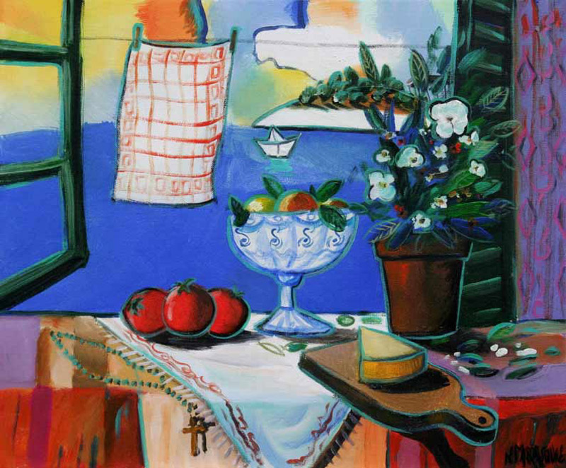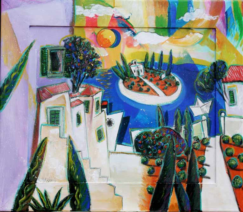 Premda Nenad Marasović svoj slikarski pristup gradi na više-manje klasičnom konceptu slike, ustrajući poglavito na tradicionalnim tehnikama, kao i na prepoznatljivom motivu, njegovo slikarstvo pokazuje i prodore suvremenosti, plijeneći pritom kultiviranom slikarskom individualnošću i snagom autorske interpretacije. Osobito u onoj svojoj dionici posvećenoj Mediteranu i njegovim mitskim krajolicima, koji kipte vizualnim bogatstvom, preplavljujući naša osjetila snažnim doživljajem- prije svega onim boje i svjetla, energije i ritma. Time Marasović slijedi onu slavnu i uvijek aktualnu tradiciju kolorističkog i ekspresivnog mediteranskog pejzažnog slikarstva, s obiljem silovite, gestualne, materičke i čulne boje, ali onda unutar toga slikarstva i onu specifičnu sekciju koja motive sažimlje, zgušnjava i u slikovnoj priči svodi na opće asocijativne znakove podneblja. Na svojevrsne znakove-piktograme Mediterana: otok s crkvicom usred morskog plavetnila, bijeli brod, užarenu sunčevu kuglu, vretenasto stablo čempresa, agavu, mali uzmorski gradić, kućice sa „škurama“ i „balaturama“, „dalmatinski interijer s komodom“ (i nerijetko s „prozorom s pogledom“)… U Marasovićevim mediteranskim krajolicima ne može se poreći prisutnost emocija i autorova osobna vezanost uz konkretni motiv, jer sve je prožeto lirskom ugođajnošću. I sve je puno mirisa mora, soli i mediteranske vegetacije, topline juga i omamljujućih vibracija. Ali to neko autorovo opipljivo sjećanje, taj zauvijek sačuvani odsječak neke drage stvarnosti i za stvarnost vezani sentiment, za njega predstavljaju tkanje u koje upliće i podlogu na kojoj gradi likovnost. Predstavljaju odskočnu dasku koja mu je kreativno polazište za bezbrojne interpretacije motiva, ali i za istraživanje same likovne materije. U takvom ozračju je nastala serija Marasovićevih krajolika iz ciklusa „Mediteran“, s mnoštvom varijacija motiva gradića i otočića mediteranskoga podneblja, pri čemu se ova motivski prepoznatljiva „priča“ pred našim očima čudesno pretvara u čistu likovnu priču. Ponajprije u priču o boji i liniji, koje su istinske vladarice ovoga slikarstva i koje određuju cjelokupni doživljaj. Jer Marasovićeva boja je puna sunca i hedonizma, strastvena je i pastozna, djelujući ne samo svojom vizualnošću, nego i svojom fizičkom opipljivošću, te pastoznom realnošću. Učvršćena strukturalnom linijom, ona se djelomično podvrgava motivu, ali daje do znanja da je istodobno i ona sama intrigantna priča za sebe, jer je pulsirajuća, silovita, gusta i živa, tvarna i oprostorena, te time prepuna energije. Stoga ona buja i dinamizira prostor, nastojeći se osloboditi okvira, a kad ga se oslobodi, istječe iz kadra, prelazi na okvir platna i vizualno se prelijeva u okolni ambijent puneći ga vibracijama.
