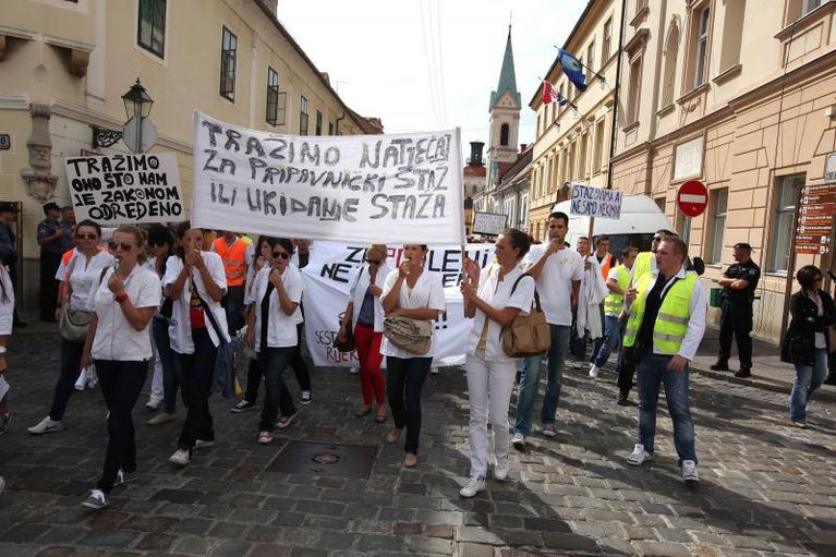 Savez samostalnih sindikata Hrvatske (SSSH) podržao je danas prosvjed diplomiranih studenata zdravstvenih studija kojim traže da im se omogući odrađivanje pripravničkog staža koji je uvjet za posao Oko 150 diplomiranih studenata zdravstvenih studija jučer je pred zgradom vlade održalo miran prosvjed… Read More »‘Ako je država postavila uvjet staža, red je da ga i omogući!’