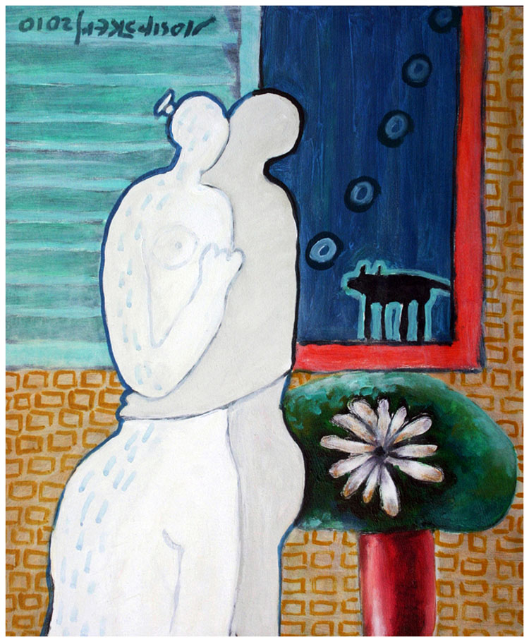 „…Novim ciklusom slika Josip Škerlj upotpunjuje svoj bogati slikarski opus naslanjajući ga na nekoliko nedavnih i prethodnih ali, istovremeno, podsječa i na svoja, dovoljno davna, slikarska ishodišna godišta. Ostajući prepoznatljiv i svoj i dovoljno drugačiji od drugih i ostalih ali i od sebe samog ostavljenog i neprozvanog u dosljednom inzistiranju na vlastitoj slikarskoj poetici, karakteričnim zaigranosima i poeziji koju udahnjuje u svoje slike. Opsjednutost bojom, žarkim koloritom i , istovremeno, plahošću i „nježnošću svoga kista“ , kao da zaustavlja svoje slikarsko (sve)vrijeme. Nudeći mu tek nove povode slutnji za neograničeni „rok trajanja“. U kronologiji koja ne iscrpljuje svoje završne tonove. Prilažući revno i sustavno s jednakom strašću, energijom, posvečenošću i emocijama nove slike. U kojima se zrcali podneblje u kojem crpi svoje obilje. Škerlj tako sve ono, svojim zbirkama poezije, nedorečeno i naznačeno, ovim slikama jasno pokazuje jednako kao što istima ostavlja dovoljno prostora i povoda za stihove koje će ispjevati ili koje je već posložio dok ih je slikao. Jednom. I onda, ohrabrujući se od neodustajanja, još jednom. Sliku novu naslikao. I ne pokušavajući joj smisliti naslov. Dok ju je potpisivao. I kada je pred bijelo platno stao. Drugi put. S punim džepovima stihova. Onih iz prve mu zbirke pjesama „Gole igre“. Od kojih su neke i u ovom ciklusu slika oživjele. Dok je, produžujući đir do ateljea, skupljao jugo na ponti kista. Onda. Kada su ga, na Stradunu, na ure noćne upozoravala sa Gradskog zvonika zvona. Grad se gubio u svojim vedutama. U novoj slici slutili se i On i Ona. Slikar je bio sam. Grad „vazda“ tu. Bila je i Ona. Uvijek snovoplovna. „ piše u predgovoru Davor Mojaš