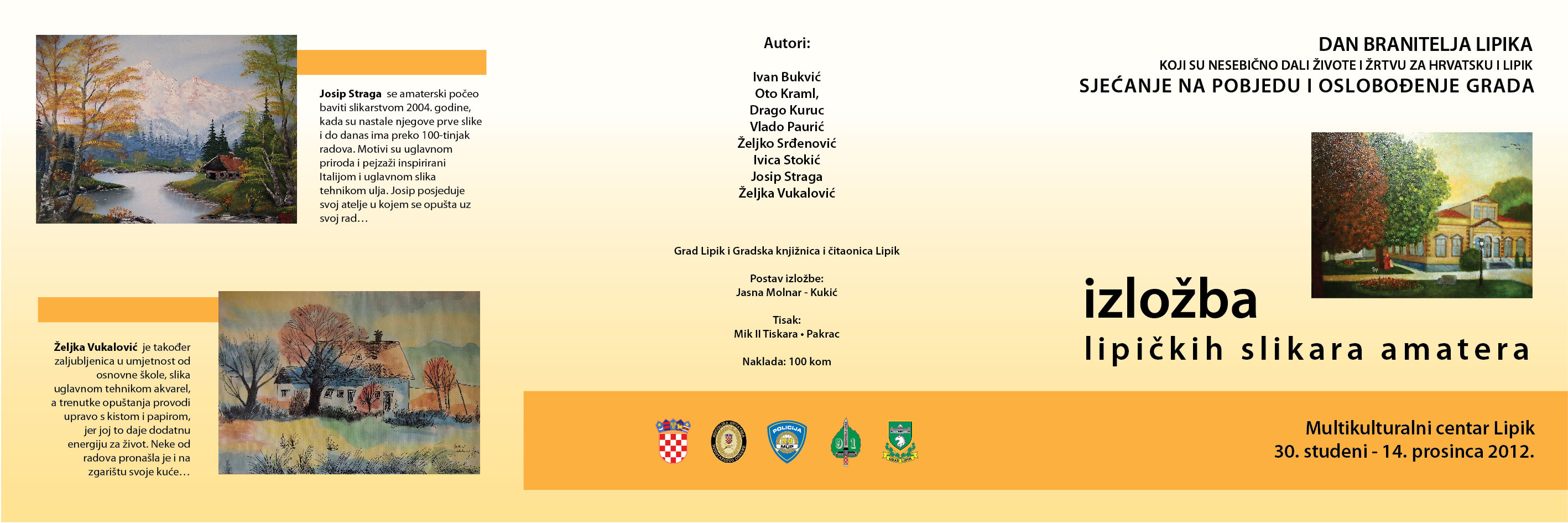 Zahvaljujemo našim slikarima te organizatorima izložbe: UDRUZI BRANITELJA LIPIKA 1991. i GRADSKOJ KNJIŽNICI I ČITAONICI ( posebno ističem Dragu Kuruca i našu Jasnu!).