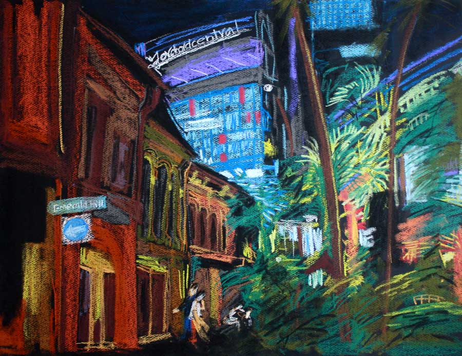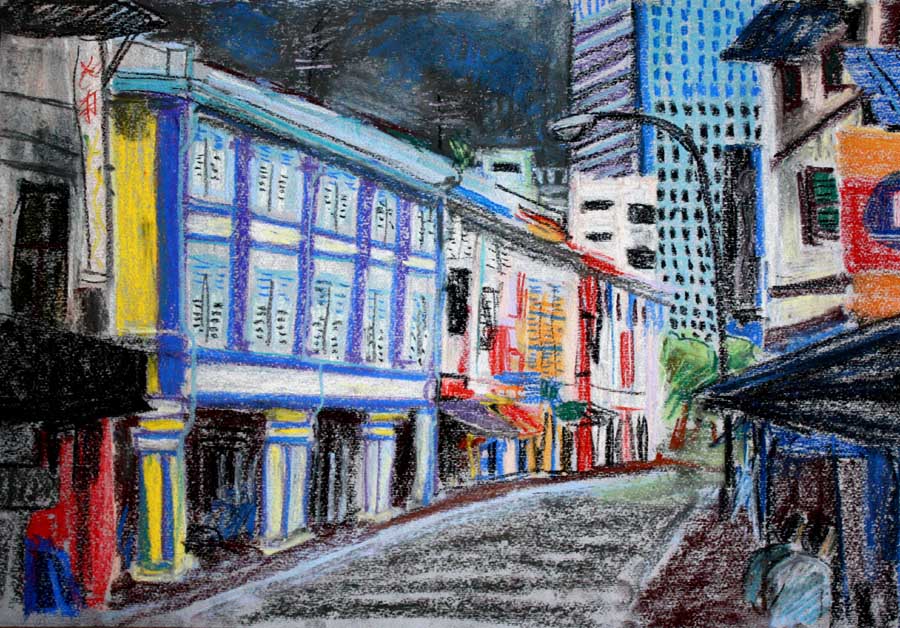 Ova izložba je zapis putovanja u dva ogromna grada. Koliko su slični, a koliko različiti iskusili smo u dvanaestak dana šetnje među arhitektonskim čudima modernog megalopolisa koji vrvi ljudima svih rasa. To je iskustvo koje se nakon proživljenog stapa u jedno sjećanje koje postaje život za sebe. Tako su ovi zapisi i memorije postali nešto posebno i samo naše nakon nekog vremena putovanja. Čudno kako proživljeno ovisi o promatraču tj. onome koji proživljava iskustvo. Slike i fotografije su tek mali presjek ovog obiteljskog skustva. Segmenti i fragmenti proživljenog. Sam objekt našeg proživljenog iskustva su gradovi-megalopolisi. Singapur jest vruć, sterilan, multietnički grad u kojem se zna red, rad i disciplina. Dok je Hong Kong konglomerat ljudi, građevina, kulture, povijesti i kolonijalnog doba i naravno, ogromne svjetske luke. On te asimilira a da to ni ne znaš. Živi dan i noć. Šokira te svojom veličinom, blještavilom, mogućnostima i tamnim zakucima. Ova dva grada su sve što mi, na ovim prostorima, u svojoj zemlji, nemamo. Zato teče stalno čuđenje dok hodaš njegovim ulicama. Kad sam uzela kredu u ruke i stavila ova sjećanja na papir – ocrtao se unutrašnji grad – megalopolis kojem se ne nazire kraj. On stalno raste kako sjećanja postaju stalnija. Dva grada, različita no u jednom sigurno slična – u nasmiješenom, ljubaznom, znatiželjnom, kosookom i radišnom licu… (Sonja Reljanović)