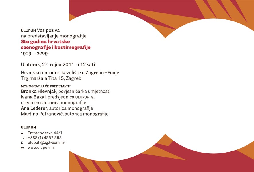 Nakon četiri godine od početka rada na projektu Sto godina hrvatske scenografije i kostimografije 1909.- 2009., javnosti će biti predstavljena dugo očekivana istoimena monografija. Time je zaokružena cjelina započeta koncem 2009. godine kada je ULUPUH realizirao najveći izložbeni projekt u struci – Sto godina hrvatske scenografije i kostimografije 1909.-2009., u suorganizaciji sa Hrvatskim narodnim kazalištem u Zagrebu. Projekt je bio sastavljen od pet izložbenih cjelina, kojima se dostojno obljetnice proslavila godišnjica zapošljavanja prvog scenografa (i kostimografa) u zagrebačkom HNK. Stručne suradnice na izložbi, dr. sc. Ana Lederer (scenografija) i dr. sc. Martina Petranović (kostimografija), napravile su odličan, ali i težak izbor najboljih hrvatskih scenografija i kostimografija.