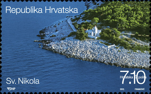 – Sv. Nikola (marka nominalne vrijednosti 7,10 kn) sagrađen je 1882. godine na najvećem dalmatinskom otoku Braču nad rtom uvale Pučišća te je do danas jedan od najmanjih jadranskih svjetionika. Nakon podizanja odmah je opremljen snažnim svjetlosnim lećama prema čijim su se bljeskovima noću desetljećima navodili teretni brodovi koji su plovili za Pučišća radi ukrcaja kamena iz kamenoloma. Svjetlo Sv. Nikole obilježava jedino utočište sve većem broju nautičara koji krstare uz sjevernu obalu otoka Brača.