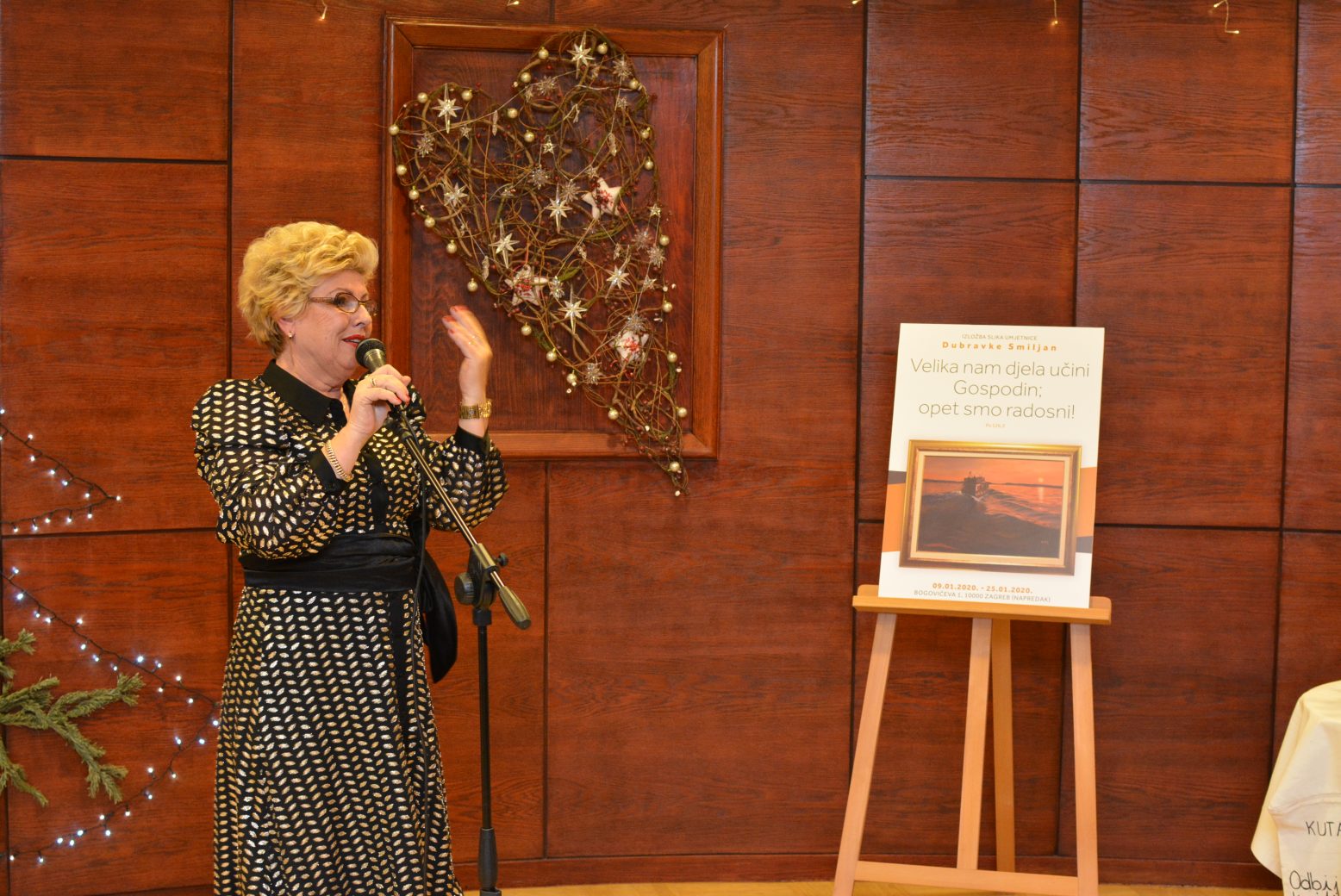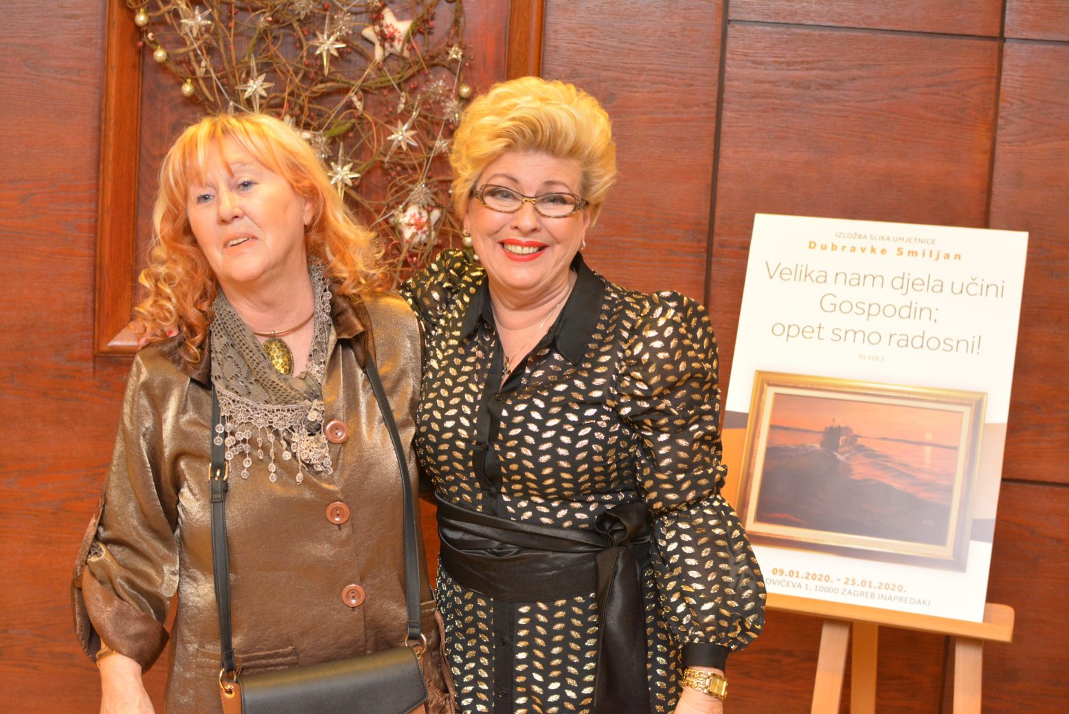 Druga samostalna izložba slika umjetnice Dubravke Smiljan naziva “Velika nam djela učini Gospodin; opet smo radosni!” otvorena je 9. siječnja, u izložbenom prostoru KUD-a Napredak, Bogovićeva 1 u Zagrebu. Izložba se može pogledati do 25. siječnja 2020. godine.