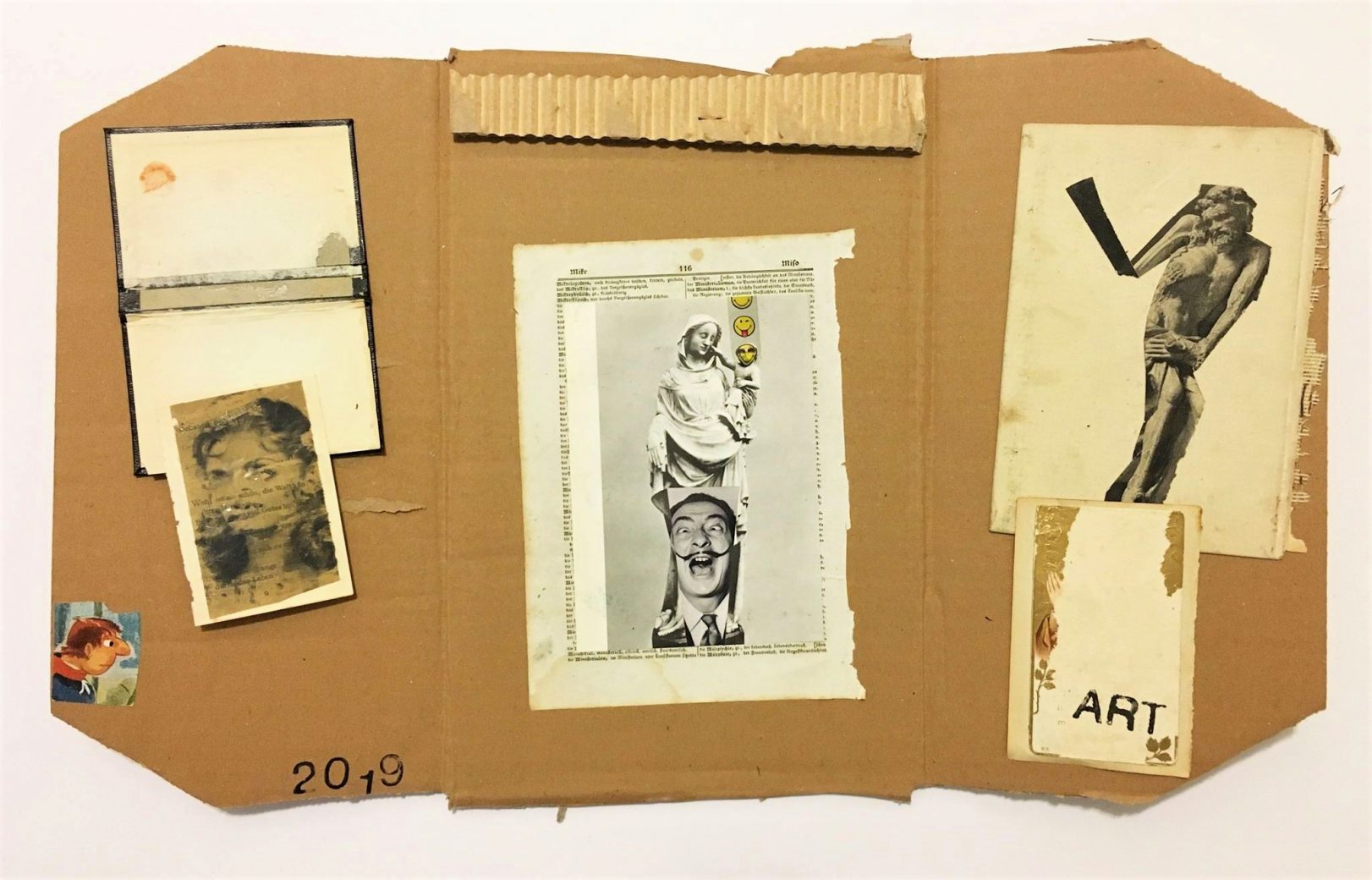 Autor u katalogu izložbe nije želio životopis niti predgovor te je s njim obavila intervju vlasnica galerije i akademska slikarica Dragana Nuić-Vučković. Između ostaloga umjetnik je kazao da ga motivira želja za stvaranjem, davanjem uvijek nečeg novoga, činjenja stvari drukčijima. Njegovo činjenje, kako kaže, nije veliko i čini što je moguće u njegovim okvirima te je mali djelatnik u ogromnom polju umjetnosti. Izložbe u galerijskim prostorima nisu mu jako važne, radije svaku večer postavlja svoje nove radove u raznovrsne albume na društvenim mrežama. Njegovi su radovi uglavnom mali kolažirani crteži u okvirima koje sam izrađuje od starih kartonskih kutija ili okvira starih knjiga. O tome je kazao da je izbor biorazgradivih materijala moralno odgovorniji i simbolizira njegov stav o postojanosti. Radovi nemaju nazive, na njima su tekstualne poruke, pa i godine u budućnosti na čijim prizorima stvara svoje vizije svijeta.
