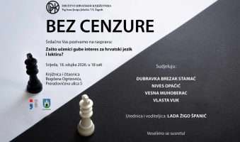 Knjižnice grada Zagreba: Dopredsjednica DHK -a Željka Lovrenčić (književnica, prevoditeljica, kritičarka) vodit će književni razgovor s autoricom Dianom Rosandić Živković povodom obljetnice 30 godina njezinog umjetničkog stvaralaštva 20.04.2026. | ponedjeljak, Knjižnica Marije Jurić Zagorke. Početak događanja: 18 sati Razgovarat će se o knjigama koje su se predstavile u… Read More »Razgovor | Diana Rosandić Živković: Mojih prvih trideset, 20. travnja - Festival “Svi zajedno hrvatsko naj” od 1. do 3. svibnja u Vukovaru