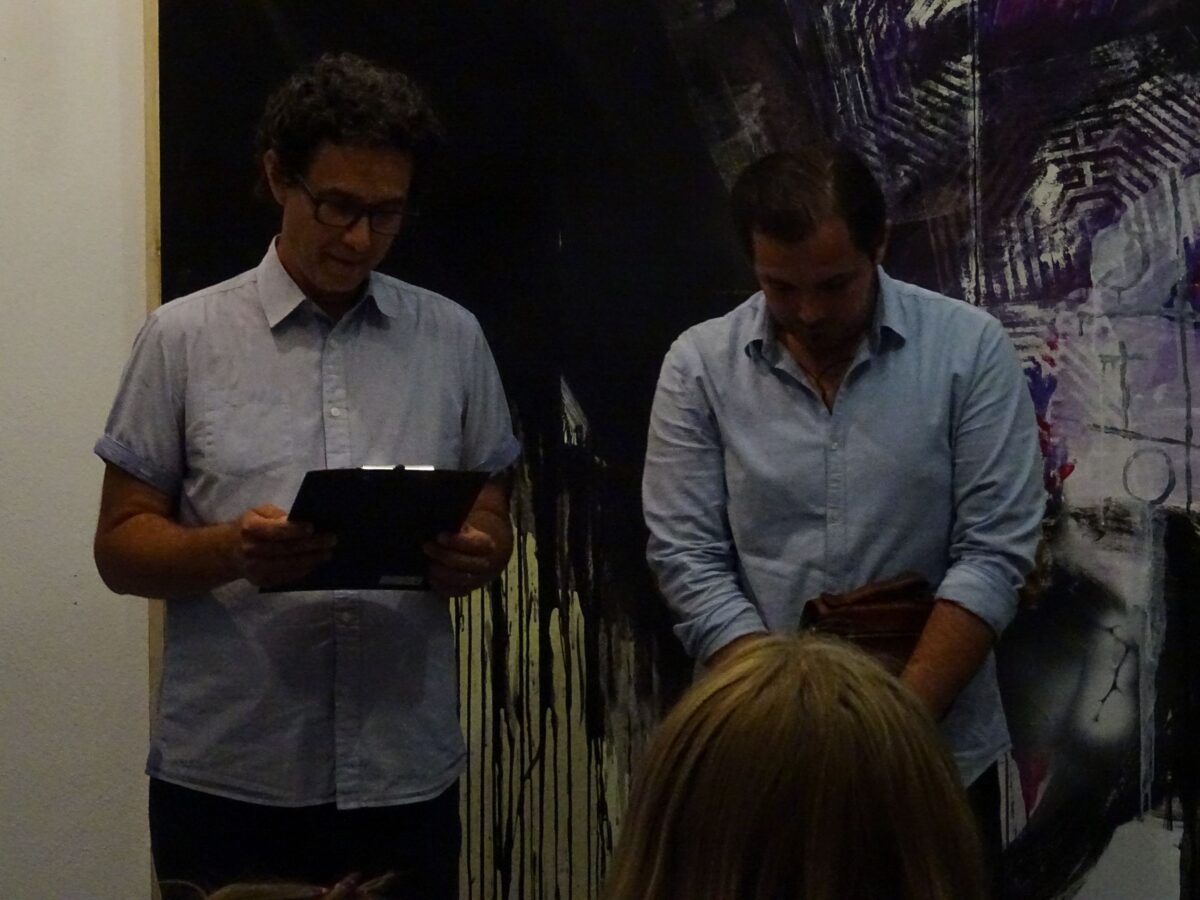 Izložbu je otvorio Tomislav Ćavar dipl. pov. umj. u riječi:” Današnje društvo je u cijelosti brendirano i ima tanku glazuru ispod koje nema gotovo nikakvog sadržaja. Počevši od hrane koja lijepo izgleda, a nema okusa, pa sve do retuširanih fotografija ”apsolutne sreće” na društvenim mrežama. U Darkinom prikazivanju Hercegovine nema mjesta površnosti, u njegovoj umjetnosti nestaje Instagram glazure i PR-ovske dopadljivosti. Motivima drače, trnja, krvi, kamenjara, loze i križa ide direktno na sadržaj razbijajući patvorene ljuske Hercegovine i prikazujući propovjedničkom snagom agoniju ovoga kraja. U svom slikarstvu uspijeva spasiti izvorni, hercegovački DNA i zaštititi ga od kulture ljuske. Stoga, s punim pravom možemo reći da je Darko Dugandžić autohtoni, hercegovački, kršćanski slikar. “