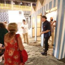 Tijekom večeri, publika je u tri navrata imala prilike izložbu pogledati uz stručno vodstvo, a strpljivost koja se zbog provođenja epidemioloških mjera morala trenirati pred ulazom u Export, lako se održavala uz druženje na distanci, piće i glazbu.