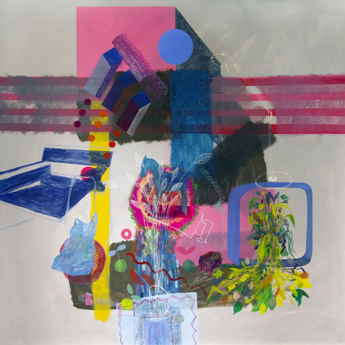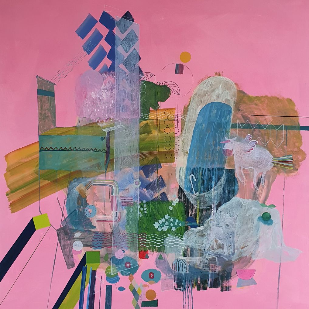 Šimunovićeve slike su gusto naseljene s različitim oblicima, karakterističnih međusobnih relacija, uz snažan kolorizam, no ipak i odmjeren, nenametljiv jer uvijek jače privlači neki znak i zagledajući se u njega dok oko klizi preko boja i sustiže figuru iz djetinjstva, biljku, ptici, stolicu,svjetiljku…kreira se nova priča.