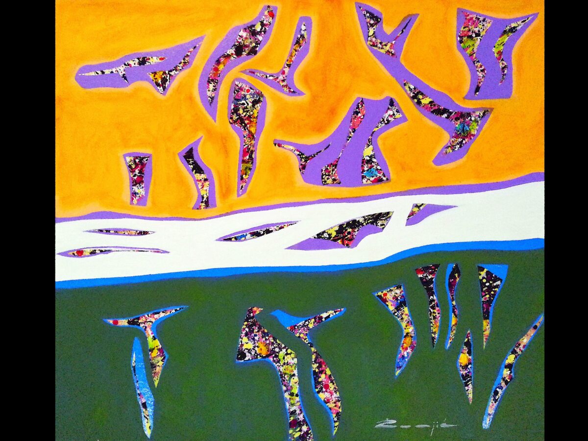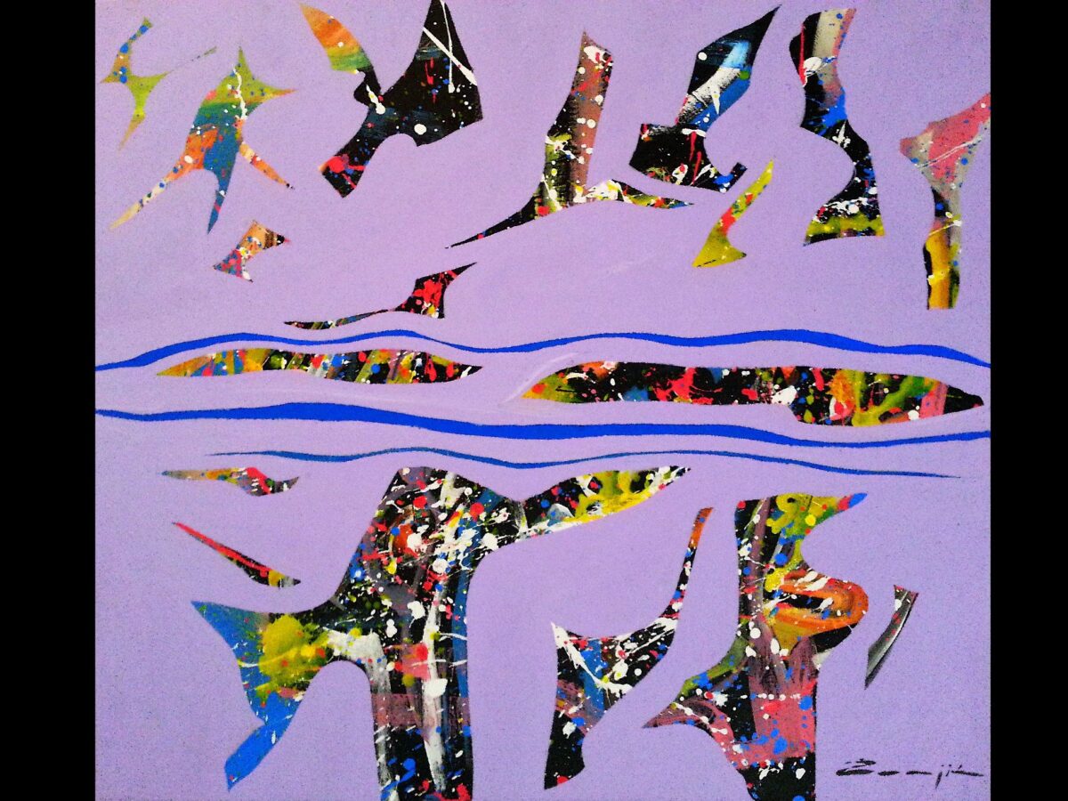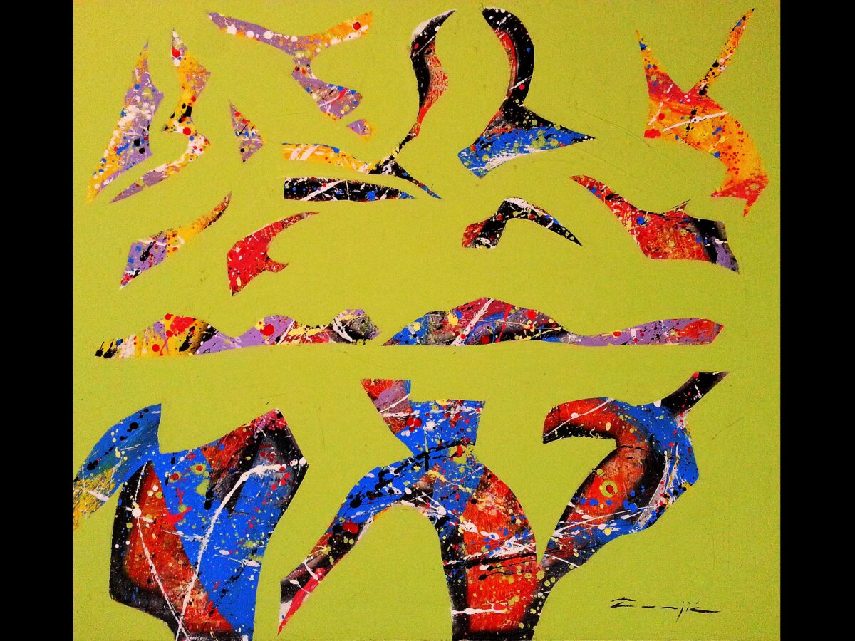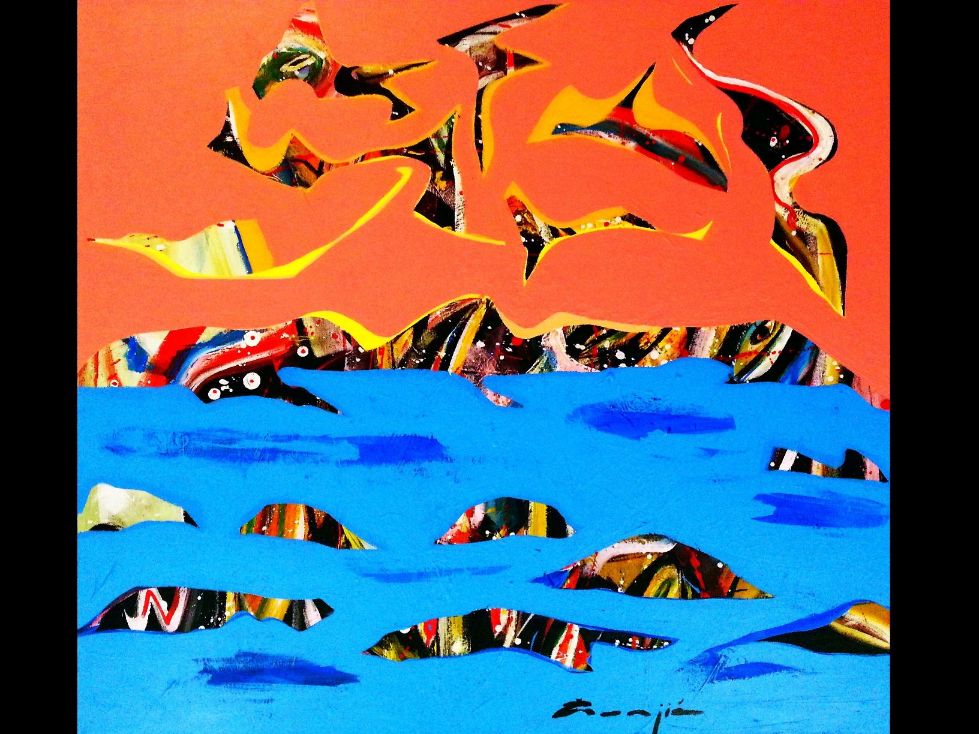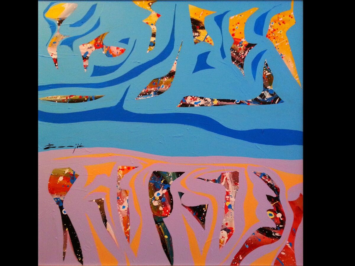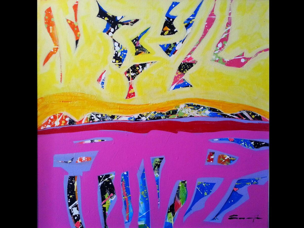 Žunjić je kreirao niz varijacija fantastičnog gibljivog svijeta, razdijeljenog i sačinjenog od snažnog, istaknutog kolora.