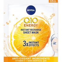 Kao dodatak vašoj svakodnevnoj njezi za smanjenje prvih bora NIVEA donosi Q10 Energy sheet masku koja će ublažiti njihovu vidljivost te vratiti svježinu umornoj koži bez sjaja. Dva puta tjedno masku jednostavno razmotajte i nanesite na prethodno očišćenu i osušenu kožu. Nakon 10 minuta masku nježno odlijepite i uživajte u osvježenom izgledu kože!