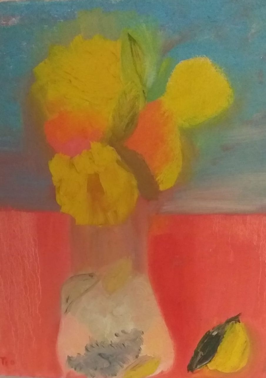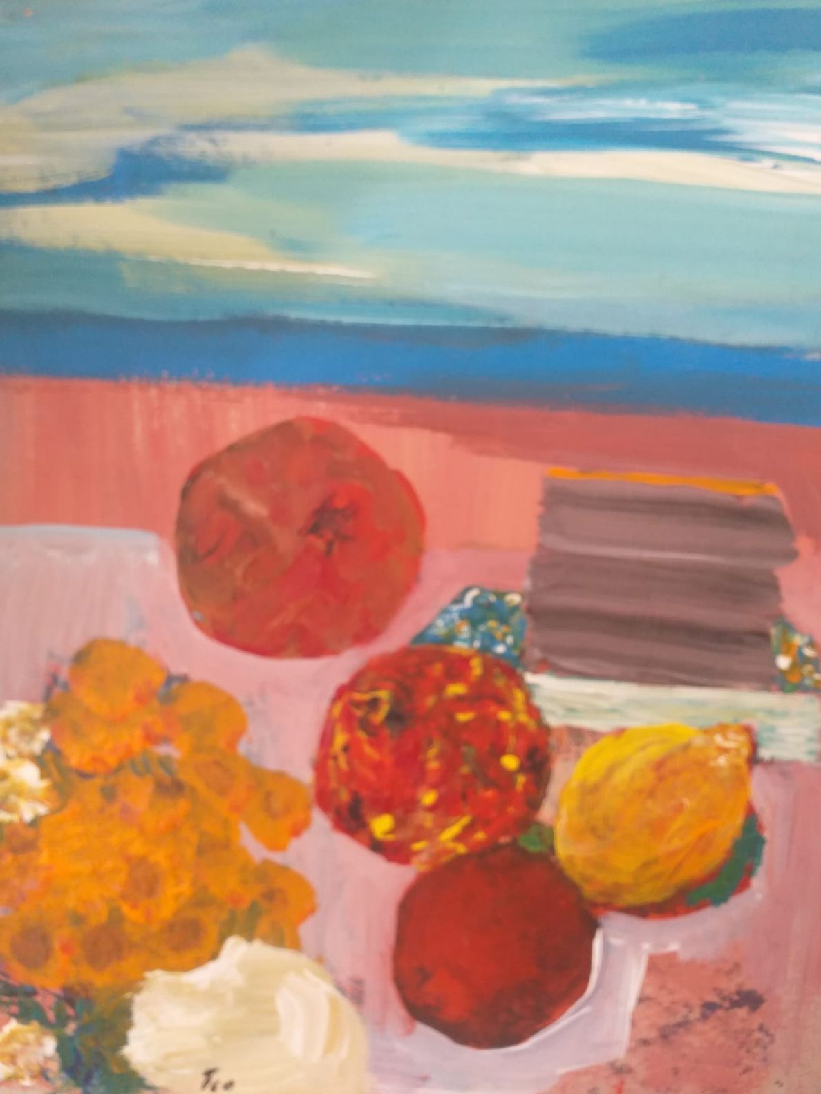 Teo Trostmann, nedaleko u atelijeru, istražuje osobitosti svakodnevnog, vaze i cvijeća, pogleda na otok u daljini, nekoliko plodovo voća na stolu…