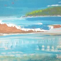 Zanimljive su i poticajne kombinacije motiva mrtve prirode s krajobrazom koji se nazire u pozadini, s odmjerenim kolorom, cvijet ispred otoka.