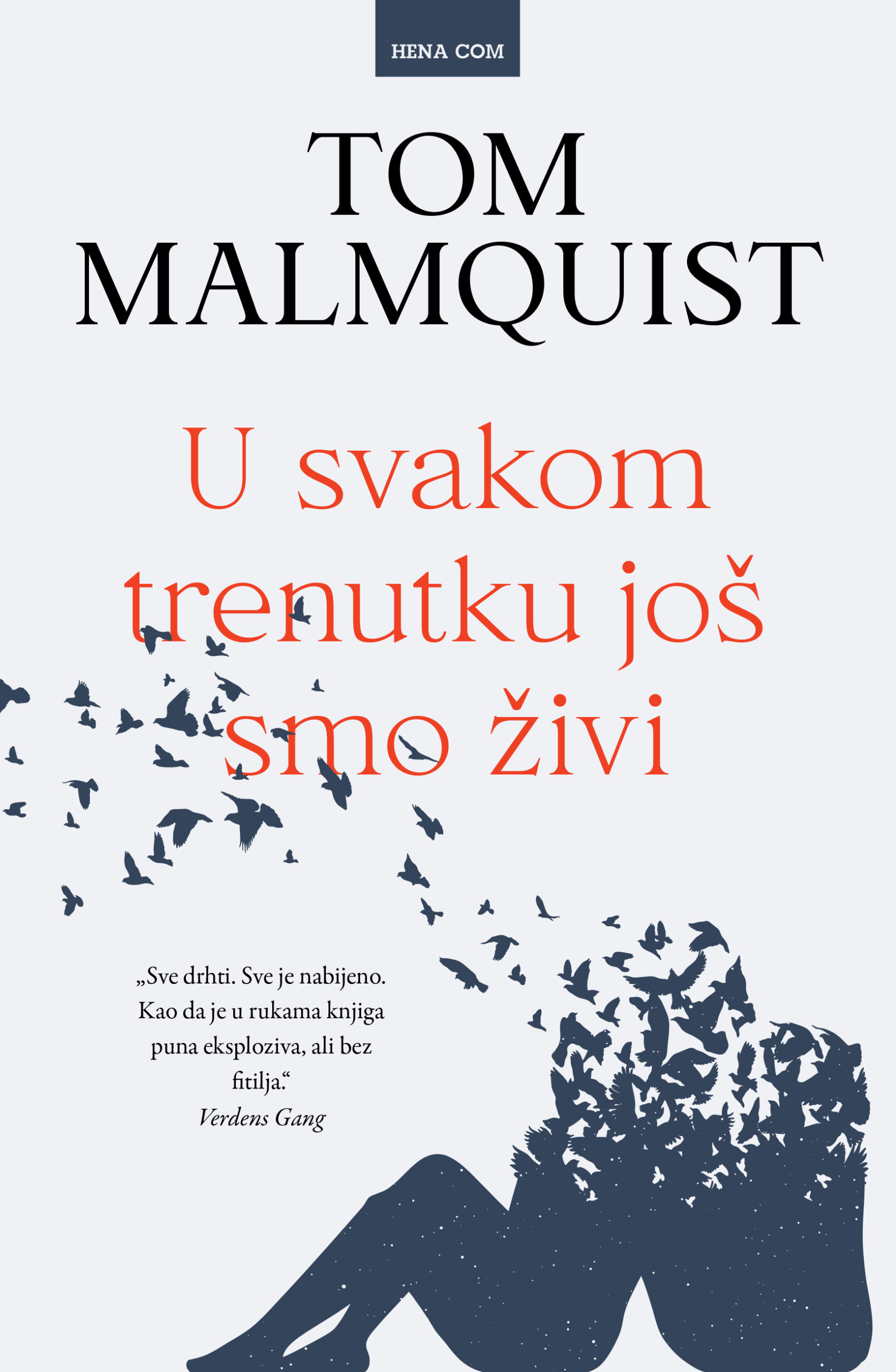 Tom Malmquist (Švedska, 1978.), švedski je pjesnik i romanopisac, i bivši igrač hokeja na ledu. Nakon što je objavio dvije iznimno uspješne pjesničke zbirke, 2015. je godine objavio i svoj prvi roman U svakom trenutku još smo živi, autobiografsku, gotovo ispovjednu prozu koju je kritika pohvalila kao „bijesno remek-djelo“. Za roman je ovjenčan prestižnim švedskim književnim nagradama, poput „Dagens Nyheter Culture Prize“i „The Karin Boye Literary Prize“, a ušao je i u uži izbor za nagradu „Nordic Council’s Literature Prize“. Živi i radi u Švedskoj.