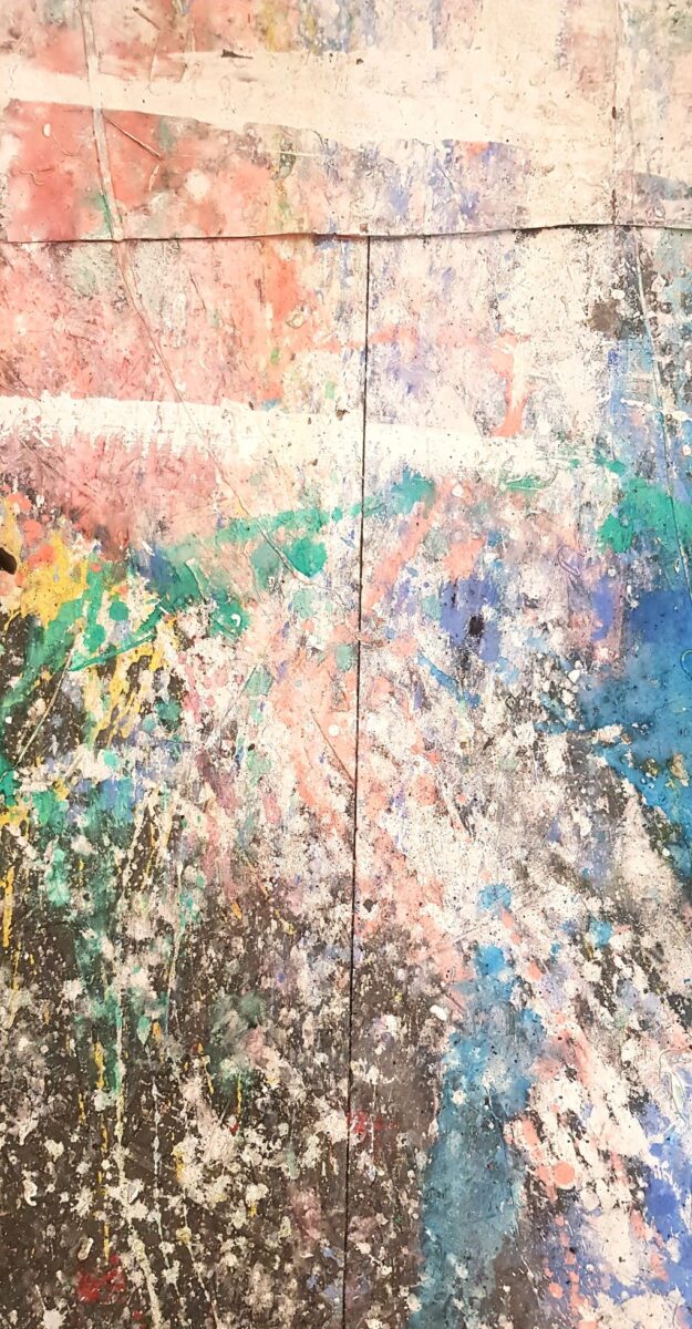 Jedan je slikarski svijet krenuo i završio u scenografiji, dok su ovi slučajni ostaci uprizorili drugi, paralelni svijet boja i oblika obilježen miješanjem većih i manjih obojanih ploha, u izravnom sudaru ili tek doticaju raznolikog kolora.