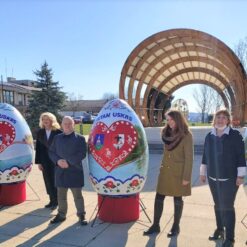 Slikari „Moslavačkog štrka“: Josipa Benac, Danijela Makoš Repaja, Dobra Vein, Zlata Benčec, Jelena Srednoselec, Kata Jerković i Marija Pukec Žigić, oslikali su tri velike pisanice zavičajnim pejzažima, motivima kulturne i povijesne baštine, simbolima plodnosti, blagostanja, novog života i nadasve radosti koju pruža Uskrs.