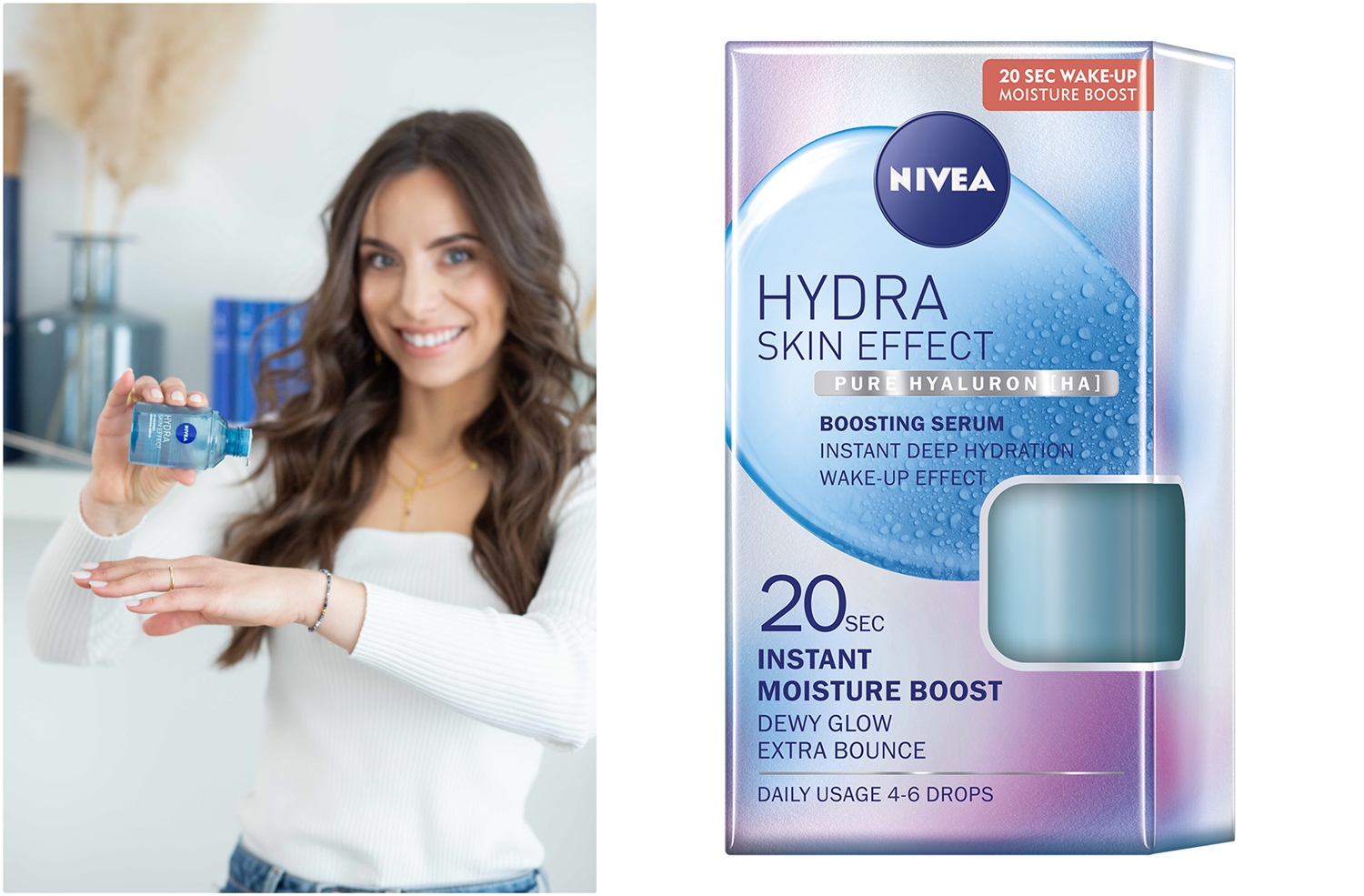 Osjećaj hidratacije koji ne prestaje, od sada je moguć uz Nivea Hydra Skin Effect hidratantni serum lagane teksture poput vode. Njegove kapljice upijaju se u vašoj koži unutar 20 sekundi, a već nakon prve upotrebe vratit će koži prirodnu blistavost.