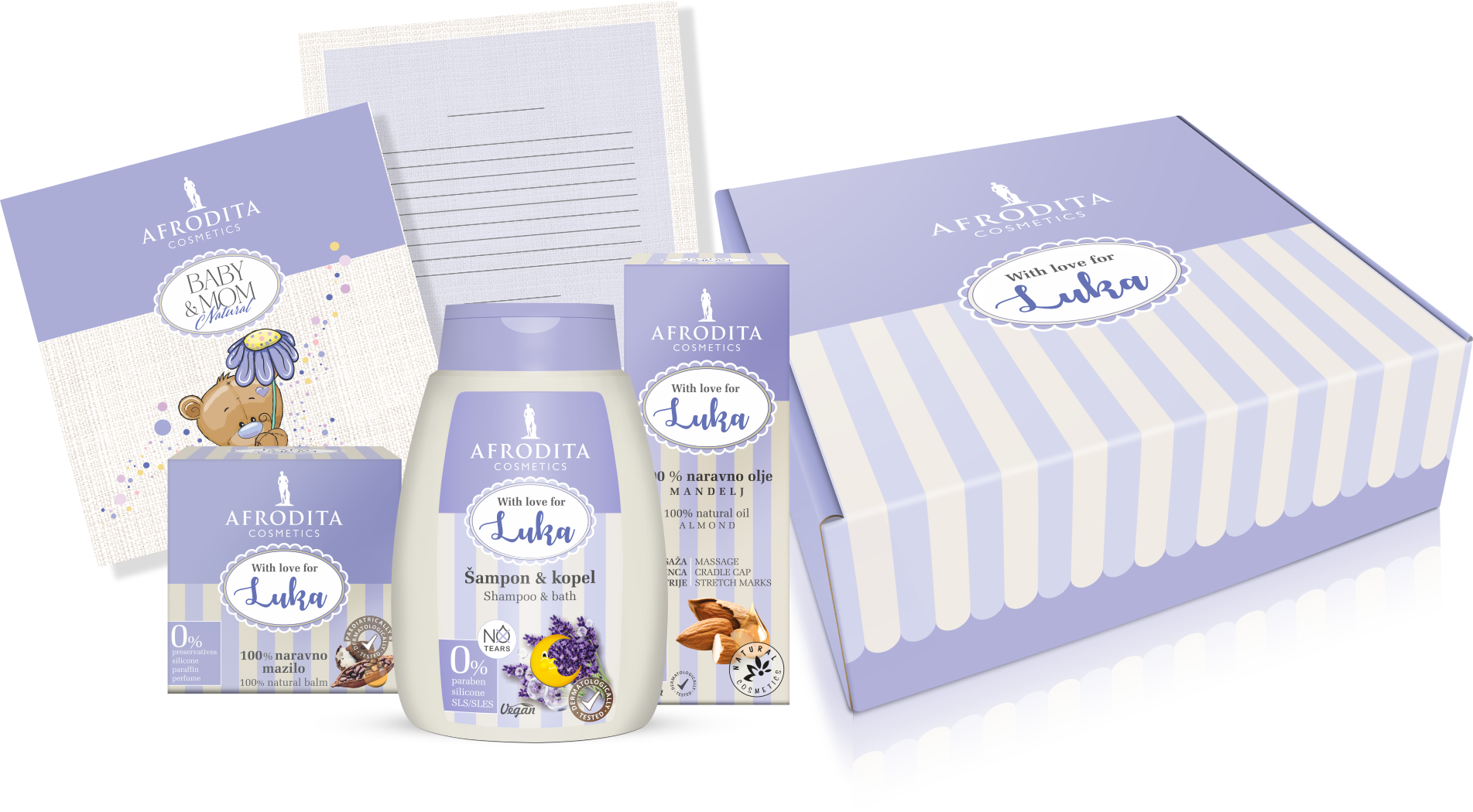 Personalizirani baby paket Kozmetike Afrodita ekskluzivno je dostupan samo u internetskoj trgovini Afrodita Cosmetics: webshop.afroditacosmetics.com i Afrodita shopovima u Zagrebu (Vlaška 41, Frankopanska 7 i Galleria Business Center Trg Drage Iblera 10).