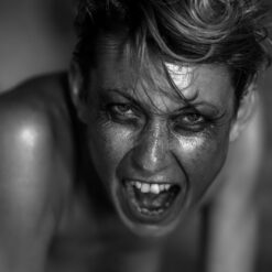Posebni segment ove prezentacije niz je izuzetnih portreta. I ovdje su uvijek ženska lica sa zanimljivim atribucijama ili zabilježena neobičnim rakursima. Fotograf ih interpretira u začudnoj maniri. Za njih pomiče kameru i ugrađuje ih u kadrove s čestim perspektivnim otklonima od očekivanog. Lice, oznaka identiteta, otkriva naše unutarnje stanje ili nudi željenu grimasu. Iako izdvojena, lica iskazuju stanja tijela. Naziremo djeliće karaktera. Hrabri izrez motiva, gotovo filmski kadriran, aktivira atmosferu. Čuđenje prikrivenim odnosima pojedinca i okoline, kao da se provlači kroz radove. Autor nudi osobni doživljaj i stanje motiva u isto vrijeme. Objema ulogama pridaje značenje u sustavu koji predstavlja.