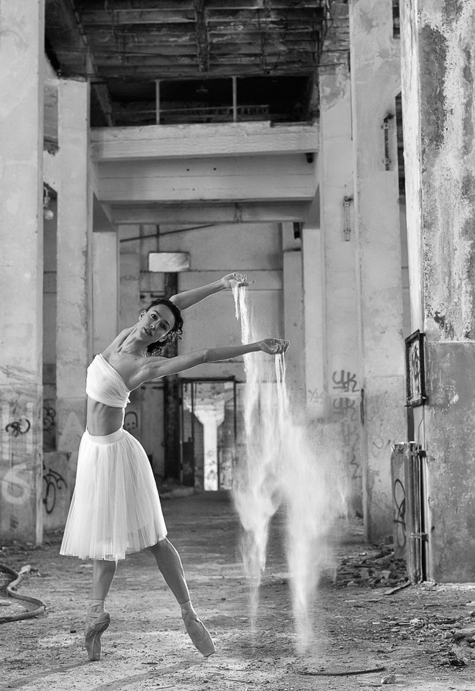 Dvije serije radova nude nježnu putenost suprotstavljenu grubom interijeru. Zapušteno tvorničko postrojenje efektna je scenografija djevojci u baletnoj odori. Kao da se, i u takvom prostoru, balerina pokušava osoviti na prste i zaplesati. Ili, kadrovi koji predstavljaju napuštenu uljaru gdje nalazimo golišavu djevojku koja se oslanja na elemente postrojenja. Na nekim fotografijama čini se kao da bi htjela pokrenuti, oživjeti pogon. Modele zabilježene u zapuštenom industrijskom pogonu može se doživjeti kao svojevrsno upozorenje na suvremenost. Divljanje profita i uništavanje poslovanja manjih pogona rezultat je globalizacije za koju smo vjerovali da će ukinuti granice i približiti ljude. No, dogodilo se suprotno. Podivljalo profiterstvo uništilo je radništvo i za civilizaciju prevažan srednji sloj stanovnika zapadnih demokracija.