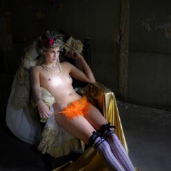 Među izloženim radovima serija je fiktivnih povijesnih reminiscencija gdje je ostavljen kolor koji igra značajnu ulogu, kako u iskazu tako i percepciji radova. Akterka je smještena u interijer poluuređenog, baroknog zdanja. Raskošnu djevojku najprije nalazimo u krinolini, povijesnom kostimu. Slijedi bilješka sa starinskom rezbarenom stolicom preko koje je odložena odjeća koju djevojka skida. Autor kao da kamerom prati razodijevanje da bi u konačnici predstavio hedonistički određen, ali i izazovan kadar gdje se nagi model odmara.