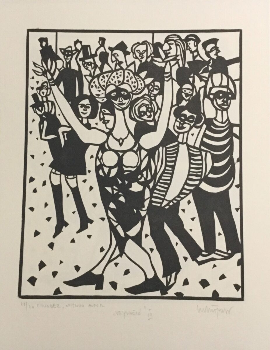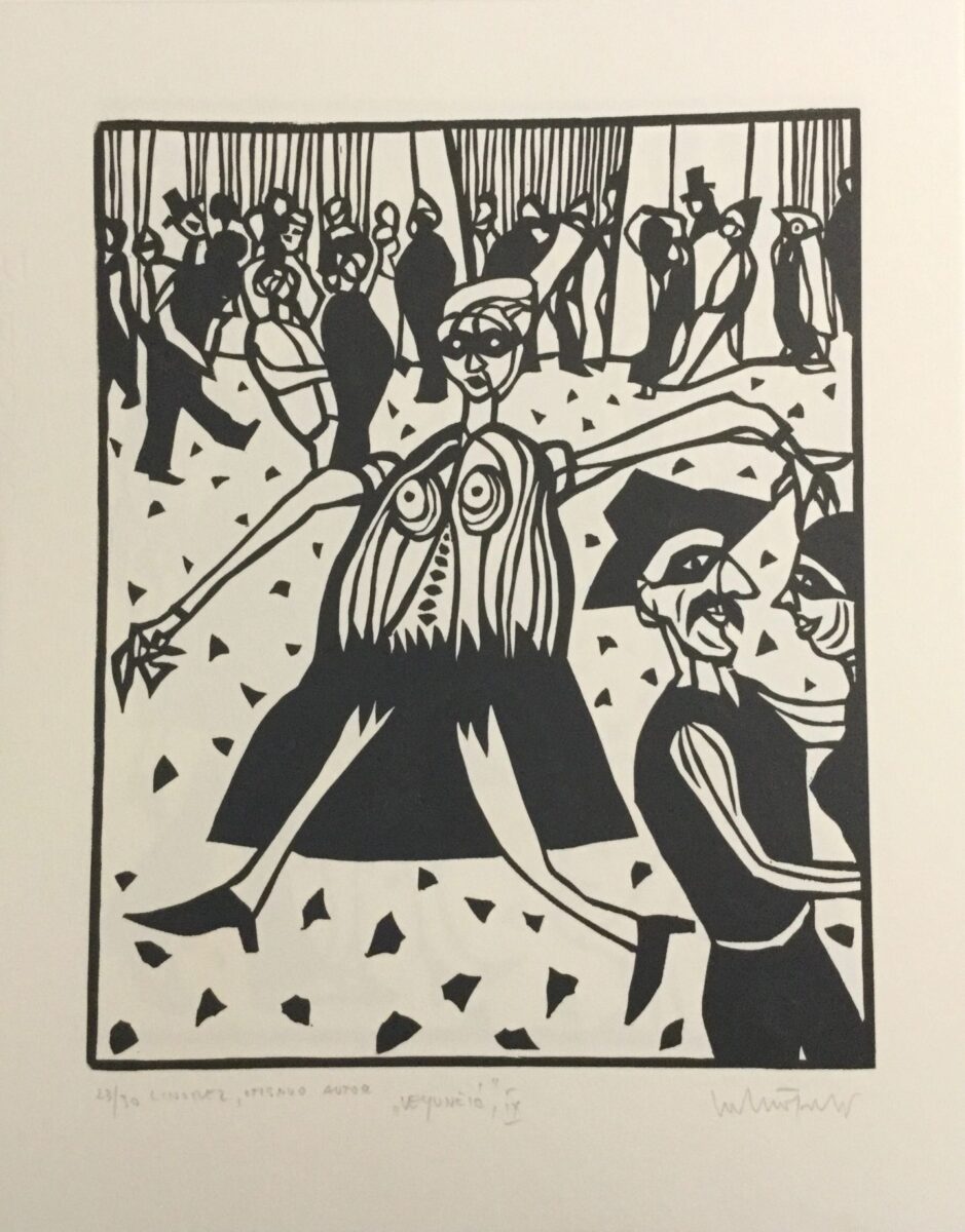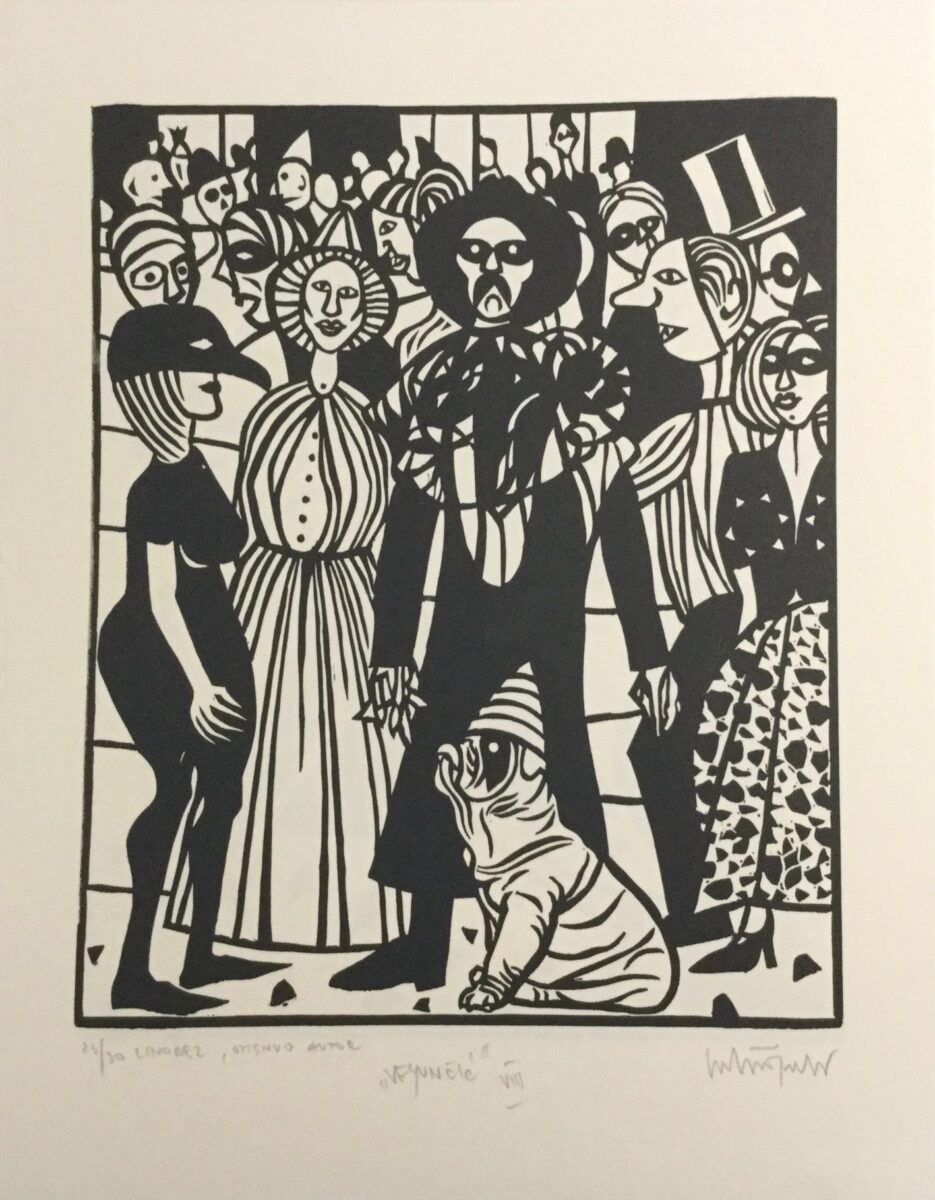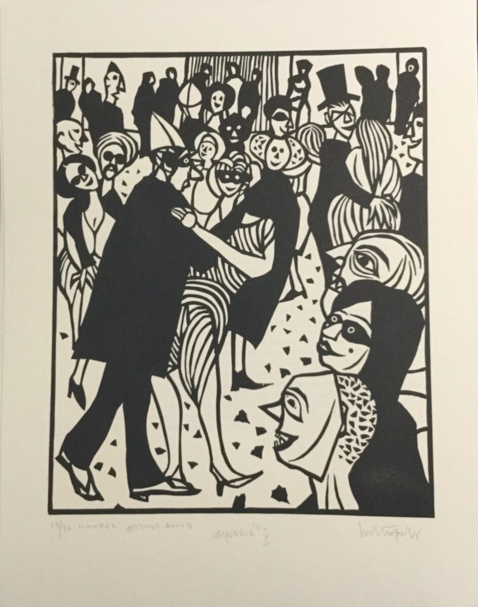 Gledajući grafičke listove, razmišljam o njima, skup rasplesanih, neobuzdanih figure skrivenih iza crnih maski, uvijek se možemo pitati, pa i kada je naš osobni život u pitanju, gdje je granica između maskiranih i otkrivenih lica i gesta, koja su prava?