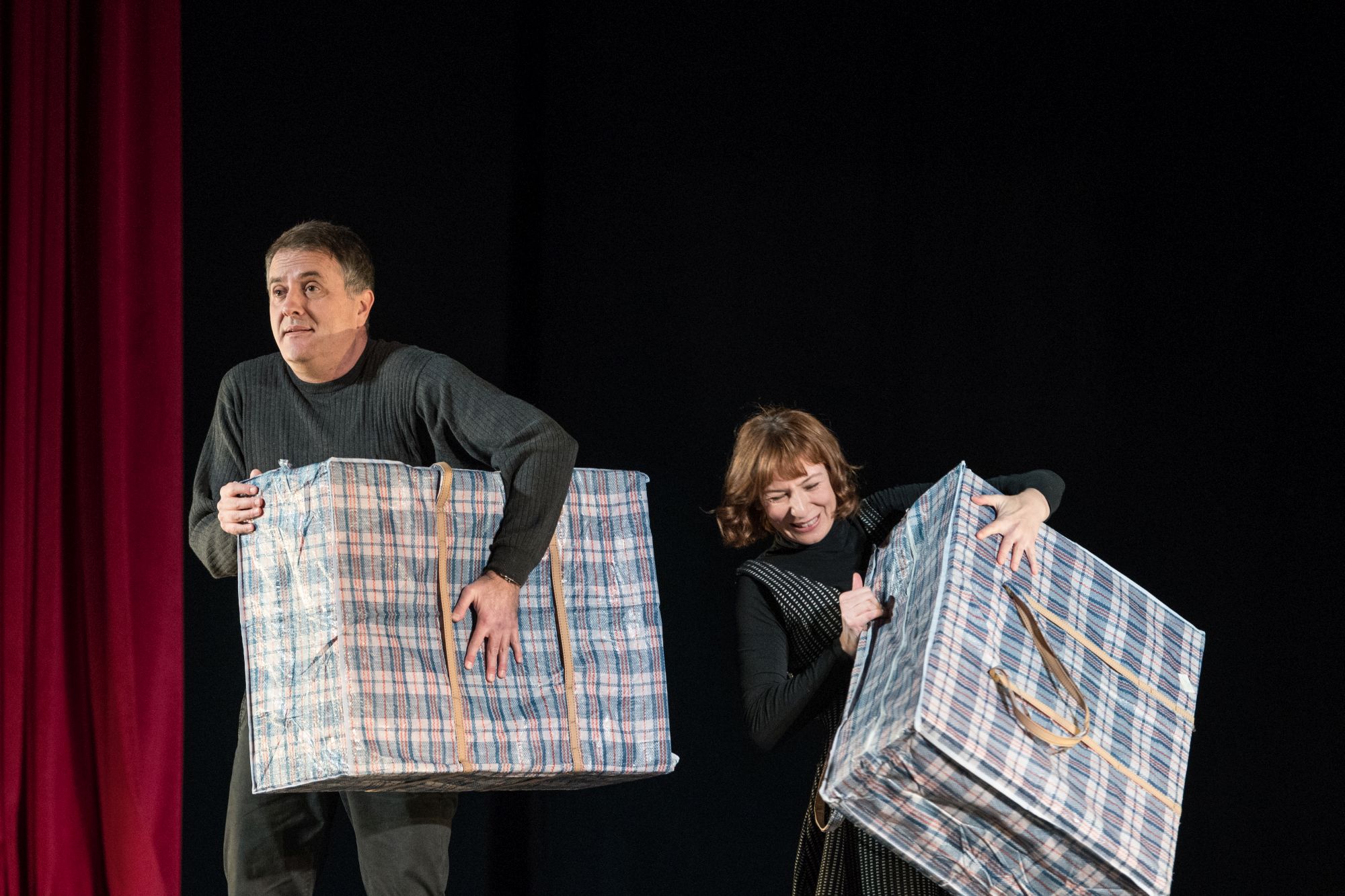 Predstava pod redateljskom palicom kazališne redateljice Arije Rizvić govori o mladom bračnom paru koji sa svojom kćerkom krajem devedesetih godina bježi iz okupiranog Sarajeva. Sa samo dvije torbe u ruci stižu u Beč u kojem iz ratnih ruševina moraju osmisliti i iznova izgraditi život te pronaći sreću.