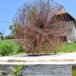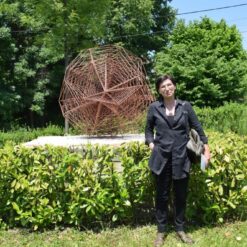 Eksterijer Župnog dvora u Vugrovcu od 2015. godine oplemenjuje se skulpturama arkanđela, poprimivši do danas izgled pravog jedinstvenog „Parka arkanđela“. Ideja koja je rodila ovu inicijativu, potaknuta je činjenicom da je sv. Mihael arkanđeo od 13. st. zaštitnik mjesta Vugrovca, danas zagrebačkog naselja, te je odluka da se u vanjskom prostoru Dvora, kao zaštićenog kulturnog dobra, postavi sedam skulptura arkanđela bila posve razložna. Nova skulptura izrađena za župni park, autorsko je djelo mag. art Ivane Ožetski i predstavlja jednog od sedmorice arkanđela – Zahariela (ili Zachariel). A zašto i kako Zahariel? Arhanđeo Zahariel (što znači “Božja zapovijed”) jedan je od primarnih anđela koji vodi duše na sud. Anđeo je iscjeljenja, također predsjedavajući anđeo Sunca i anđeo djece, posebno djece roditelja koji su sagriješili. Ima i vlast nad zemljom. Ovi atributi, odnosno uloge ovog arkanđela ogledaju se jasno u samoj formi i simbolici skulpture Ivane Ožetski naslovljene „Arkanđeo-Sfera“. Naime, sfera osim što primarno označava loptu, kružnicu, fig. može predstavljati krug ili područje djelovanja, određeni društveni ili čak duhovni krug. Upravo u tom sinonimu sfere kao određenog kruga djelovanja, pronalazim kompatibilnost s anđeoskim djelovanjem, jer kako kaže sv. Augustin, anđeo označava upravo službu, a ne narav. Po naravi je duh, a po onome što čini – anđeo. Služenje čovjeku po Božjoj nakani anđeoska je „sfera“. Sfera djelovanja, praiskonska kao i njezina arhetipska forma. Skulptura ”Arkanđeo – Sfera” iznimno je moderno rješenje geometrijske forme koja na neki način imitira prirodan živi svijet, a opet snažno odmiče u apstraktno i simbolično. Zaokupljena zamahom oblika, no štujući zakonitost prirode, autorica traga za materijalima koji će zadovoljiti potrebu za razmjernom ravnotežom dopadljivosti i umjetničke kakvoće, izvedbene zahtjevnosti i oblikovne lakoće, za skladom arhetipskog i suvremenog. Postiže to u idealnoj morfologiji sfere i odabiru materijala – čeličnih šipki koje naknadno patinira bojom hrđe. Arkanđeo-Sfera vrhunac je i posljednji u nizu Ivaninih objekata-sfera koji nastaju kao plod znatiželjnog istraživanja sakrivenog svijeta oblika koji uz vidljivi simultano postoji. U objektima koji nastaju razotkriva se, svijetu prirode inherentni, red i organiziranost na koje nailazimo svaki puta kada zavirimo u dubine geometrije prirode, često nazvane i svetom geometrijom. Materijaliziranom sada u fragilnu prostornu konstrukciju sastavljena od tetraedara, zadržavajući prozračnost i propusnost, snagom koncentriranom u samoj jezgri sfere, tajnom sakrivenom u sredini, u jezgri do koje zbog gustoće slojeva, prosto oko promatrača (smrtnika) ne može doprijeti. Svojim radijalnim širenjem u prostor skulptura zahvaća prostor, ali i prostor ulazi u nju. Kao što se mi služeći Dobru suobličujemo s anđelima ili oni s nama kada nam služe, u tom čudesnom krugu života, savršenom Božanskom planu čovjekova povratka k Njemu. U iskon, u samu jezgru, u vječnu i savršenu Božju sferu.