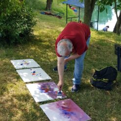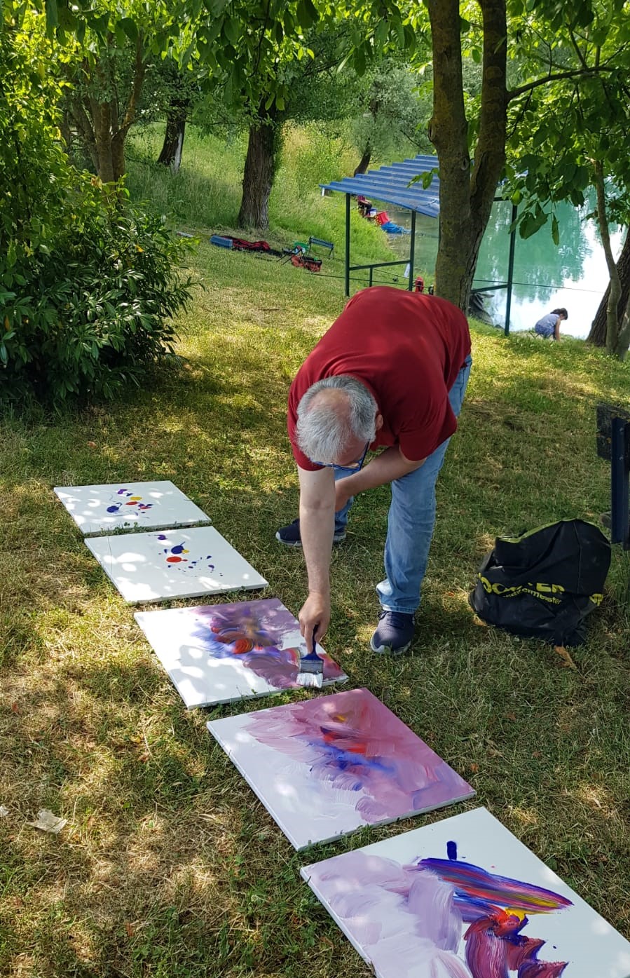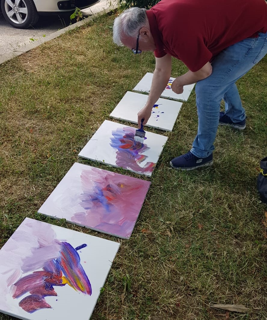 Na obali zaprešićkog jezera, na tradicionalnoj likovnoj koloniji Kluba Zapreščana, 26. lipnja 2021. godine, uz podršku svojih prijatelja slikarica i slikara Marijane Šatrak, Renate Katić, akad. kipara Mate CROate, Anđelka Brkića te dr. Zorice Majnarić, koja je sve fotografirala, zaprešićki slikar Stjepan Katić izradio je “u dahu” pet slika s motivom ružičnjaka. Sve je izgledalo kao igra “simultanka”. Pogledajte fotografije!
