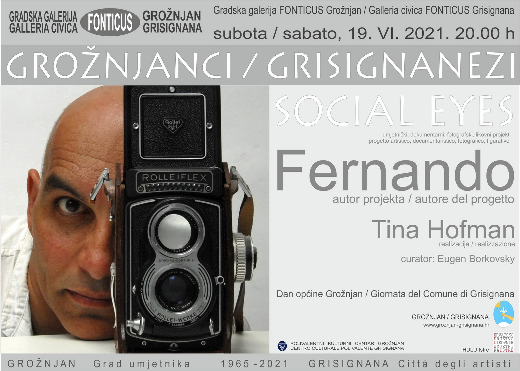U vremenu visoke obljetnice postojanja Grada umjetnika, još jednom se osvrćemo stanovnicima grada Grožnjana. Iako su stanovnici koji se ne bave umjetničkim poslovima često, bar zbirno, spominjani u mnogim publikacijama, ovaj projekt dovodi baš njih u prvi plan. Zapravo, fotografirani su svi, ili skoro svi akteri grožnjanskog života. No, fotograf je projekt posvetio onima kojima umjetnost nije primarno zanimanje. Želio je njima također odati priznanje. Autor Fernando i koautorica, suradnica, koordinatorica Tina Hofman Grožnjancima i Grožnjankama obraćaju se ponaosob, direktno, nagovarajući ih na snimanje portreta. Za one koje ne uspijeva kontaktirati, objavljuje javni plakat s pozivom. Većina se odaziva. No, ostavljena je mogućnost da se još koji realni stanovnik Grožnjana fotografira. Uz ovu izložbenu prezentaciju stotinjak portreta, radi se web stranica na kojoj će biti još mjesta… Uz to, na projekt se nadovezuje i film s tematikom vezanom uz našu znamenitu lokaciju. Sve to bit će objavljeno i nakon galerijske prezentacije ovog projekta.