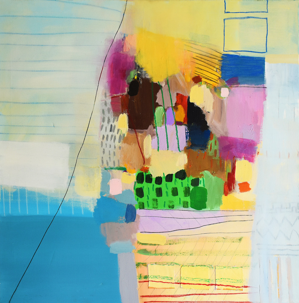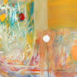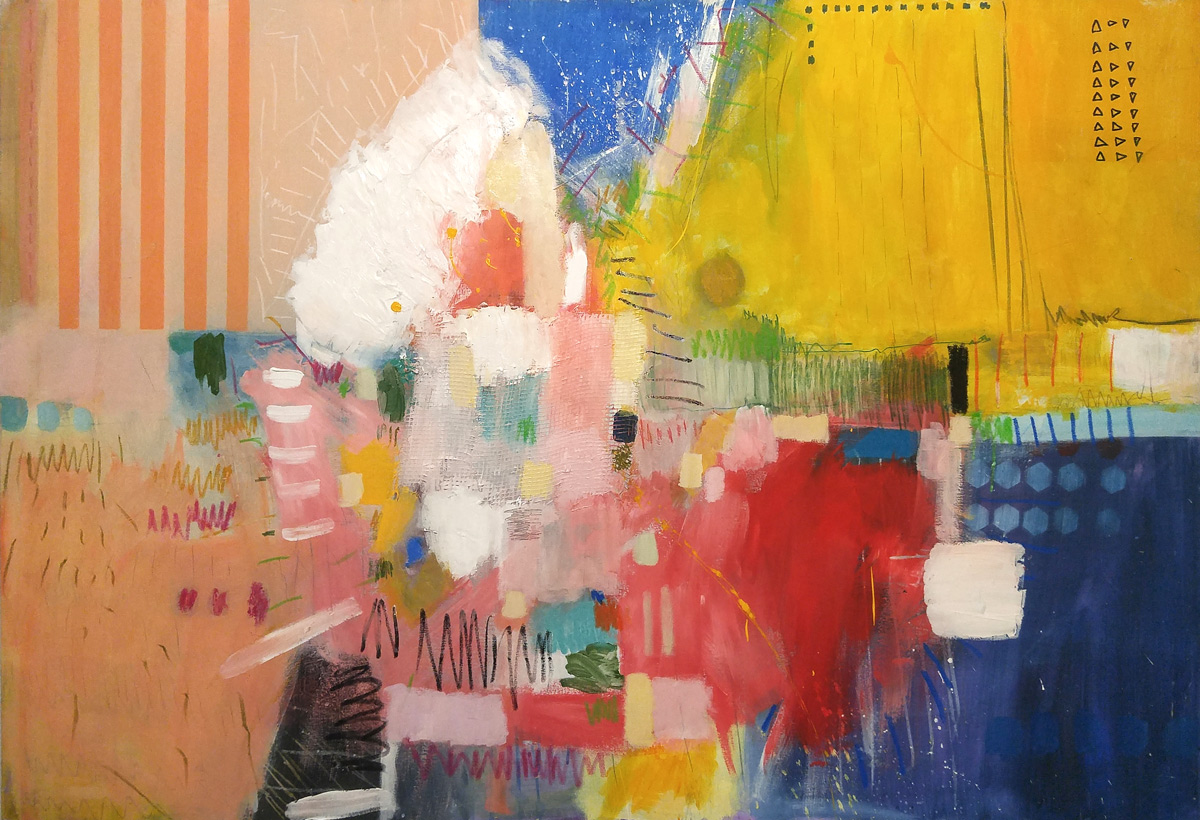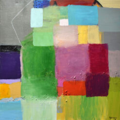 Vrtlog radosti koji na površinu izbacuje niz kvadrata, svaki u svojoj boji, ponegdje između njih zaluta i poneki oval ili dvije paralelne linije ili dvije, tri okomite zagrebane crte, neprestano, poput vulkana, ne tako snažno, ali konstantno, diše i iz vlastite dubine na svjetlo dana izbacuje obojene raznolike forme, stvarajući novi sloj nefigurativnoh svijeta.