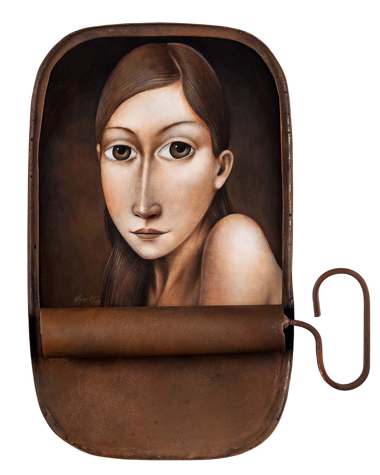 U Krunićevim slikama događa se sličan proces, ali tako da teološki aspekt zamjenjuje idejom, odnosnom kritikom svijeta koju također pretvara u simbolično značenje same slike kroz prikaz portrete žena i njenih uloga u društvu. Umjesto aure ili zlatoveza, Krunić svoje likove uokviruje i uvjetno oslobađa satiričnim prikazom poluotvorene konzerve koju koristi kao ikonološki simbol nesavršenog društva u kojemu živimo. U autoru instinktivno tinja to nasljeđe umjetničkih predaka, i upravo u tome vidim tu morfološku ljepotu i snagu njegovih portreta. Njegov slikarski impresum na inovativan način poseže za slikarskom tradicijom i istoka i zapada.