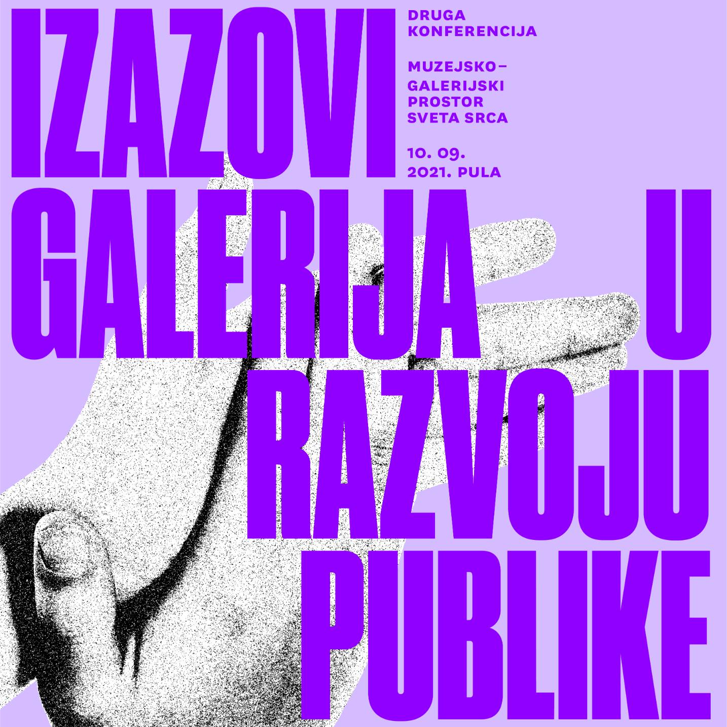 Druga konferecija Izazovi galerija u razvoju publike održat će se u petak 10. rujna 2021. godine u Muzejsko-galerijskom prostoru Sveta Srca u Puli pod pokroviteljstvom Ministarstva kulture i medija Republike Hrvatske. Konferenciju u okviru projekta Jačanje kapaciteta hrvatskih galerija za razvoj publike organizira Udruga za poticanje kreativnosti Atanor u partnerstvu s Istarskom kulturnom agencijom i Arheološkim muzejom Istre. Konferenciju će pozdravnim govorima u 10 sati otvoriti Darko Komšo, predstavnik Ministarstva kulture i medija i ravnatelj Arheološkog muzeja Istre i Anja Ademi, pročelnica u upravnom odjelu za lokalnu samoupravu Grada Pule.