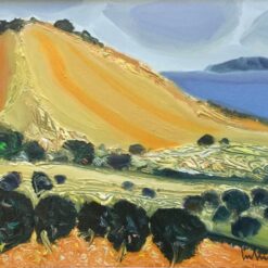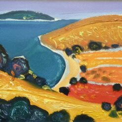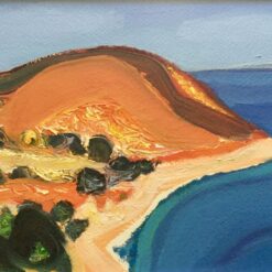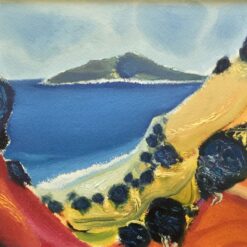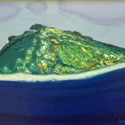 Serija impresivnih ulja na papiru s motivima pješčane obale koju nježno dodiruje more, iznad kojeg se uzdižu čudesni tajanstveni visovi, prostiru se proplanci prošarani raslinjem, dražesne tihe uvale, otoci obrubljeni zelenilo ispod oblaka i neba jedinstvene plave boje.