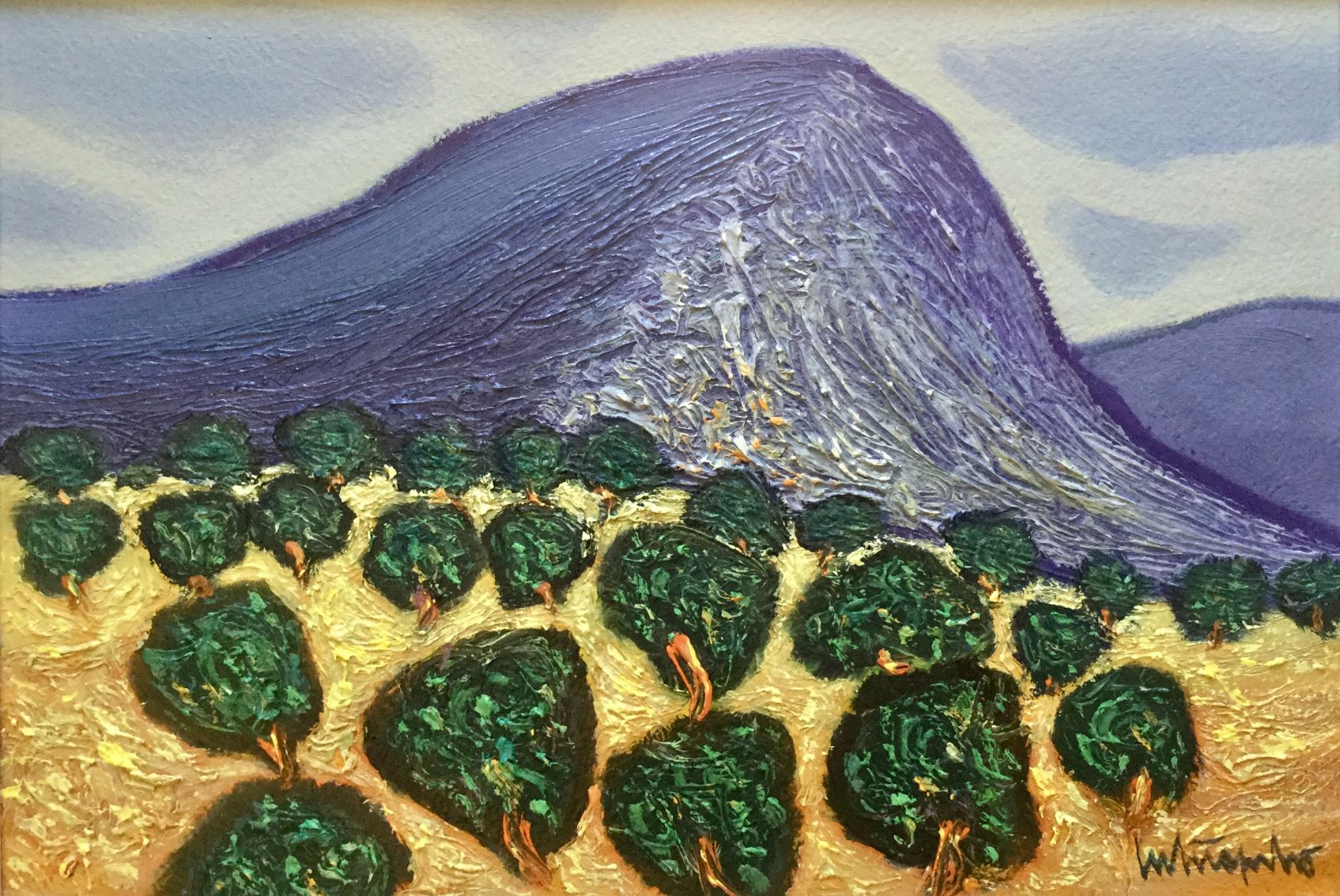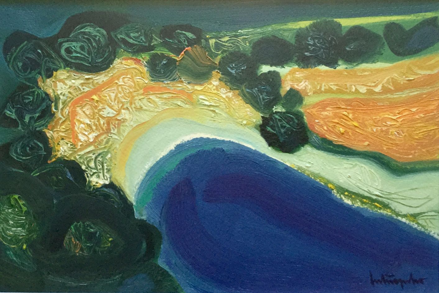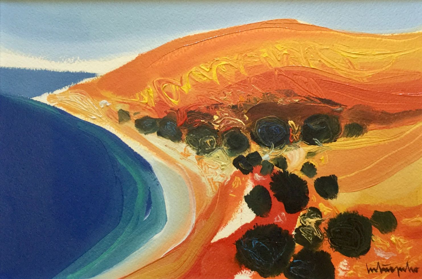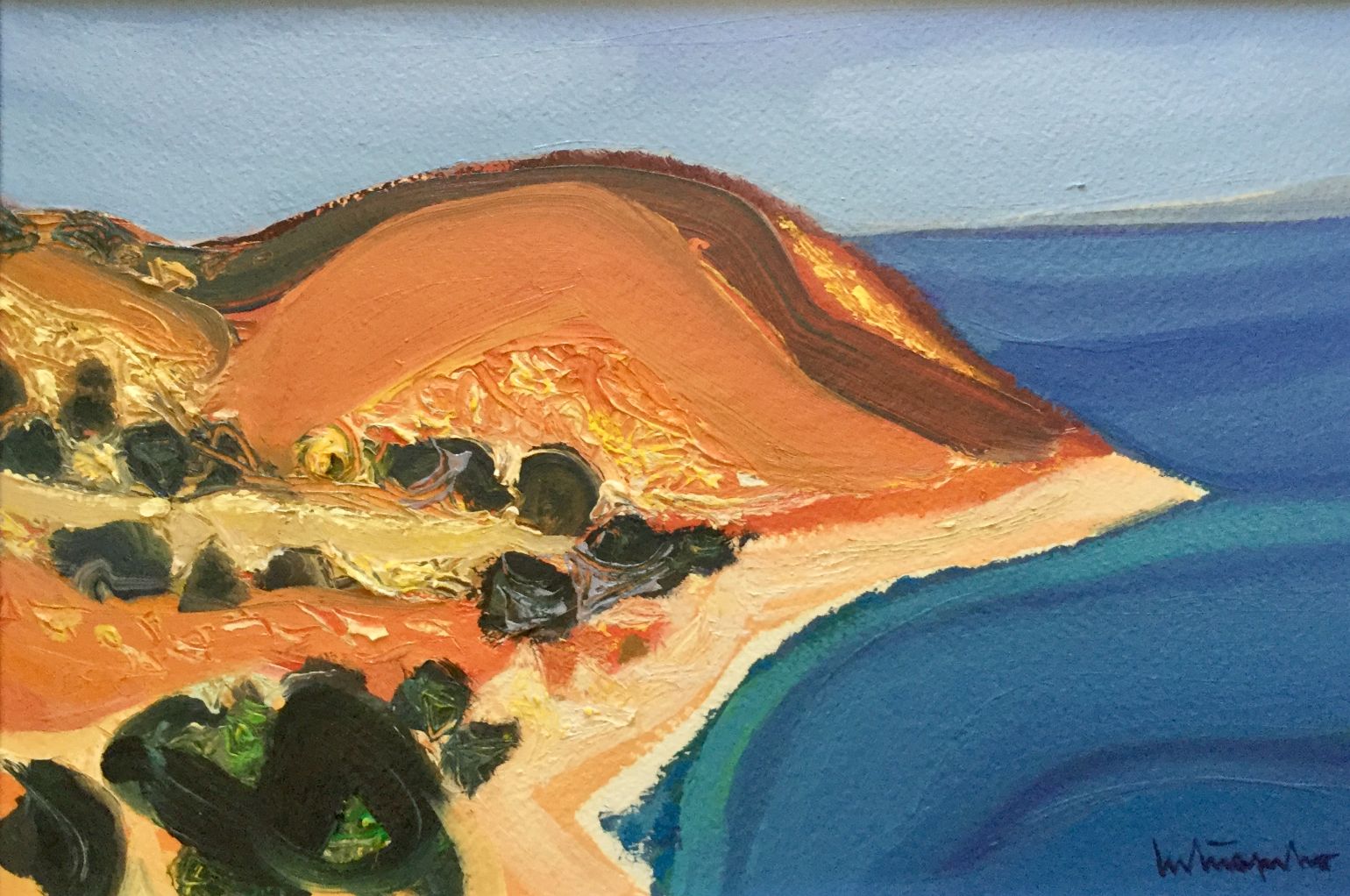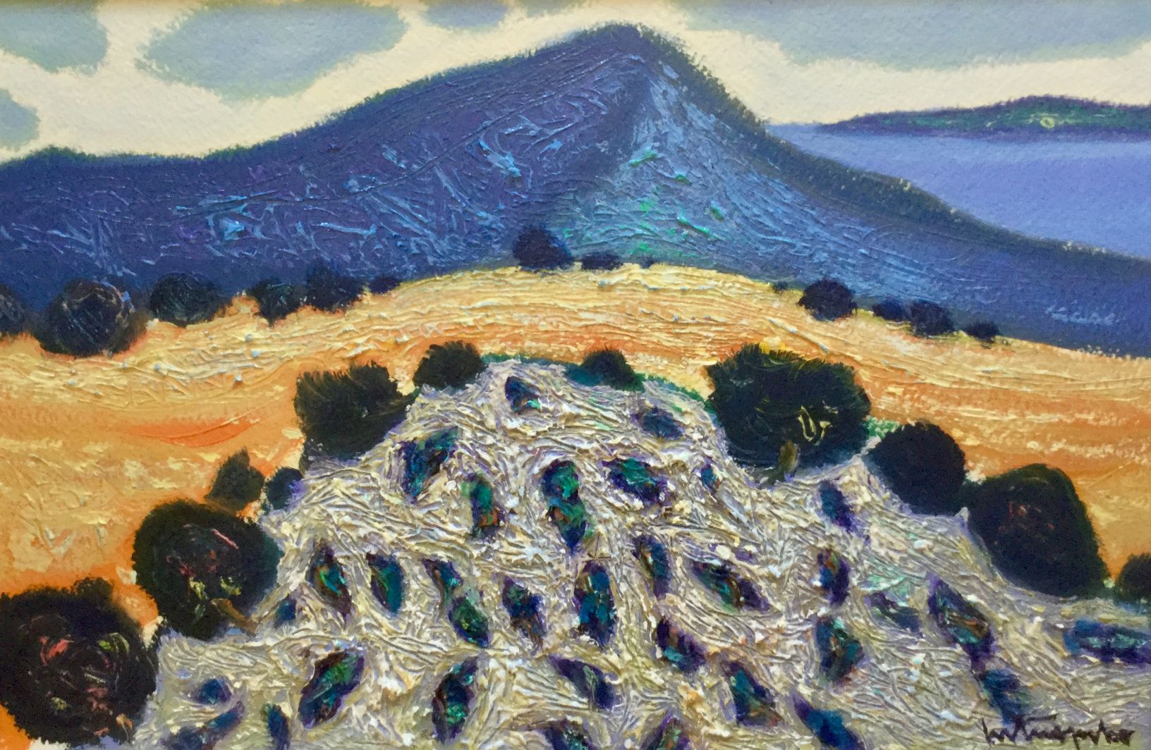 Serija impresivnih ulja na papiru s motivima pješčane obale koju nježno dodiruje more, iznad kojeg se uzdižu čudesni tajanstveni visovi, prostiru se proplanci prošarani raslinjem, dražesne tihe uvale, otoci obrubljeni zelenilo ispod oblaka i neba jedinstvene plave boje.